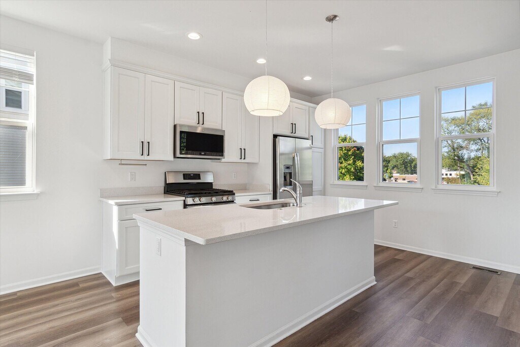 Welcome home to this stylish 2-bedroom,3-bath townhome located just a short walk from downtown Brighton's shops,restaurants,and events. The main floor offers a bright open-concept layout with plenty of natural light and durable luxury vinyl plank flooring. The kitchen features quartz countertops,stainless steel appliances,a gas stove,and a pantry cabinet for extra storage. Upstairs you'll find two spacious bedrooms with large walk-in closets and the convenience of second-floor laundry just outside the bedrooms. Additional highlights include tiled bathrooms,a mudroom entry with generous coat closets,and plenty of storage throughout. Enjoy your private balcony and the convenience of an attached two-car garage,plus a nearby park area perfect for relaxing outdoors.