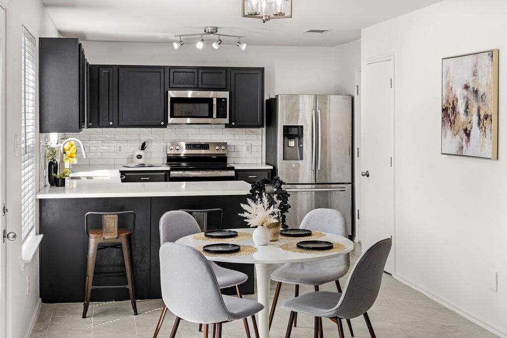 Welcome to 525 Meadow Park Drive, a beautifully updated 3-bedroom, 2.5-bath, 1,860 sq ft home in the Meadows of Georgetown. Completely refreshed in 2025, this move-in ready home features a bright, open floor plan with high ceilings, fresh paint, and abundant natural light. The fully renovated kitchen boasts quartz countertops, stainless steel appliances, a deep sink with modern faucet, subway tile backsplash, garbage disposal, and extended counter space, plus a spacious walk-in pantry. Bathrooms offer modern quartz counters, sinks, and brushed nickel fixtures. Upstairs, three bedrooms feature large walk-in closets, and the primary suite provides privacy and comfort. New tile flooring in the entry, kitchen, and powder room complements professionally cleaned carpet throughout. Major updates include a new roof (2023), HVAC (2023), full exterior paint (2025), and cedar fence (2025). The backyard is perfect for entertaining, gardening, or play, and the home is pet-friendly. Located in Georgetown ISD, with easy access to SH-29, SH-130, San Gabriel Park, shopping, and dining, this home combines modern comfort with convenience in a desirable community.