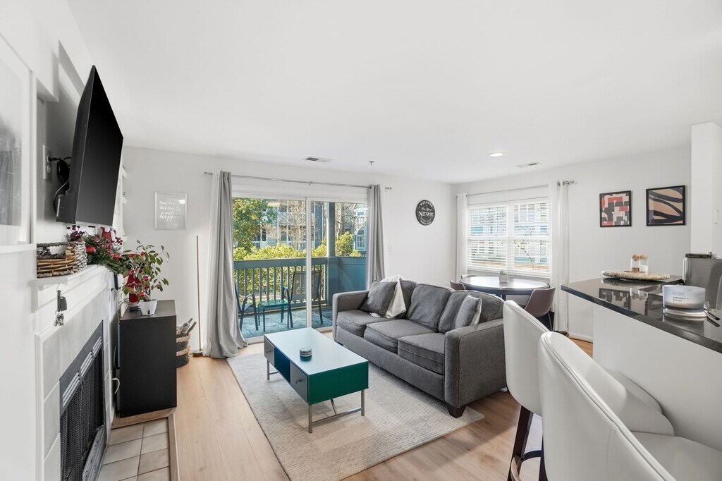 Experience Uptown living in Charlotte’s vibrant Fourth Ward! This stylish end-unit condo offers exceptional privacy, convenience, and charm. The open floor plan features a cozy fireplace, built-in bookshelves, and a spacious covered balcony overlooking the pool and beautifully landscaped common areas with city views. The kitchen is appointed with granite countertops, stainless steel appliances, and a breakfast bar—perfect for entertaining. Abundant natural light enhances the condo throughout. The private owner’s retreat includes a walk-in closet and an ensuite bath. Community amenities include a pool, firepit, picnic areas, and a fitness center. Assigned parking is located just outside the unit for easy access. Enjoy walkable access to dining, shopping, museums, Bank of America Stadium, Truist Field (Knights Stadium), Spectrum Center, and nearby parks. Convenient to the light rail, Amtrak, Greyhound, greenways, and trails. Easy access to I-277 makes commuting a breeze. Furniture is negotiable.