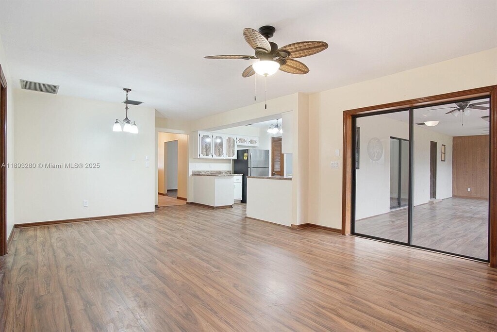 A true must-see! This beautiful 3-bedroom, 2.5-bathroom split floor plan. This home is over 2,100 sqft under air, with a large 2-car garage, custom workbench, and plenty of inside and outside storage. Brand-new remodeled bathrooms, freshly painted, ample closet space, and new vinyl plank flooring throughout. It comes fully equipped with a large utility room (washer/dryer and mop sink), an enclosed screened patio entrance, and an additional enclosed Florida room that could be used as a 4th bedroom, TV room, or office. A huge, fully fenced backyard is perfect for entertaining. The immaculate, landscaped front and rear yards give this home great curb appeal. This home features a great kitchen, living room, and dining room. The bedrooms are all generously sized.
