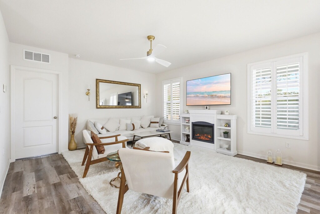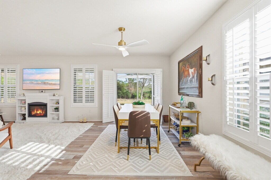 Beautifully maintained 4-bedroom, 2-bath home built in 2020 offering 1,806 square feet of thoughtfully designed living space. The open-concept floor plan provides seamless flow between the living, dining, and kitchen areas, ideal for both everyday living and entertaining. The kitchen features modern cabinetry and ample counter space. Elegant plantation shutters enhance both style and privacy. A split-bedroom layout offers added privacy for the spacious primary suite, while the additional bedrooms provide flexibility for guests, a home office, or family use. Outdoor living is a true highlight of this home, featuring one of the largest screened-in patios in the neighborhood. This custom-built patio was designed with every detail in mind for the perfect outdoor enjoyment. Enjoy fantastic lake views and exceptional privacy, ideal for morning coffee, relaxing evenings, or entertaining guests while taking in the peaceful surroundings. Located in a well-maintained HOA community with access to a clubhouse, community pool, playground, and tennis courts. Conveniently situated near I-4 and I-95, with easy access to shopping, dining, and the beaches of New Smyrna. Move-in ready and designed for comfort, convenience, and modern living. This stunning 4-bedroom, 2-bath home offers 1,806 square feet of thoughtfully designed living space and was built in 2020, providing modern finishes and energy-efficient construction throughout. Step inside to an open-concept floor plan that is perfect for both everyday living and entertaining. The spacious kitchen flows seamlessly into the living and dining areas, creating a bright and inviting atmosphere. A split-bedroom layout offers added privacy for the primary suite, making it a peaceful retreat at the end of the day. One of the standout features of this home is the large screened-in porch overlooking a serene lake — the perfect place to enjoy your morning coffee, unwind in the evenings, or host guests while taking in the beautiful water views. Located in a well-maintained HOA community, residents enjoy access to a clubhouse, community pool, playground, and tennis courts. The neighborhood is conveniently situated near I-4 and I-95, allowing for easy travel and commuting while still being just a short drive to shopping, dining, and the world-famous beaches of New Smyrna. If you're looking for modern comfort, community amenities, and peaceful lakefront living, this home truly checks all the boxes.