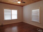 Minutes to downtown Pensacola! Covered front porch. Open floor plan. Living/dining combination with ceiling fan,hardwood floors,high ceilings & built-in corner cabinet. Fully equipped kitchen with breakfast bar & tile countertops.. Ceiling fans in both bedrooms. Master bedroom features French doors leading out to backyard deck. Laundry with stack unit (not warranted per lease) is located inside the master bathroom. Nice open deck on back of house.