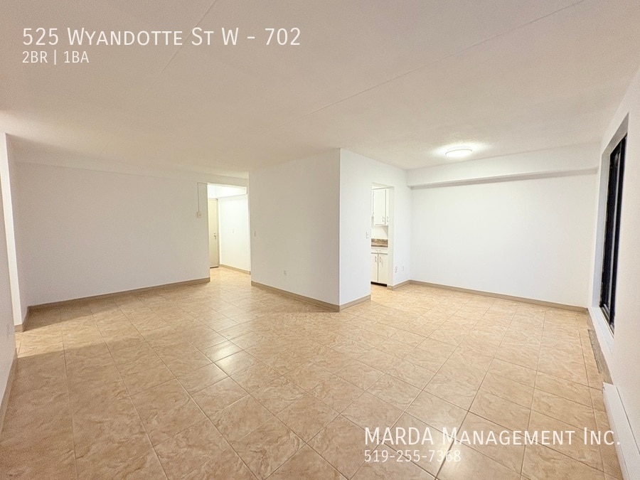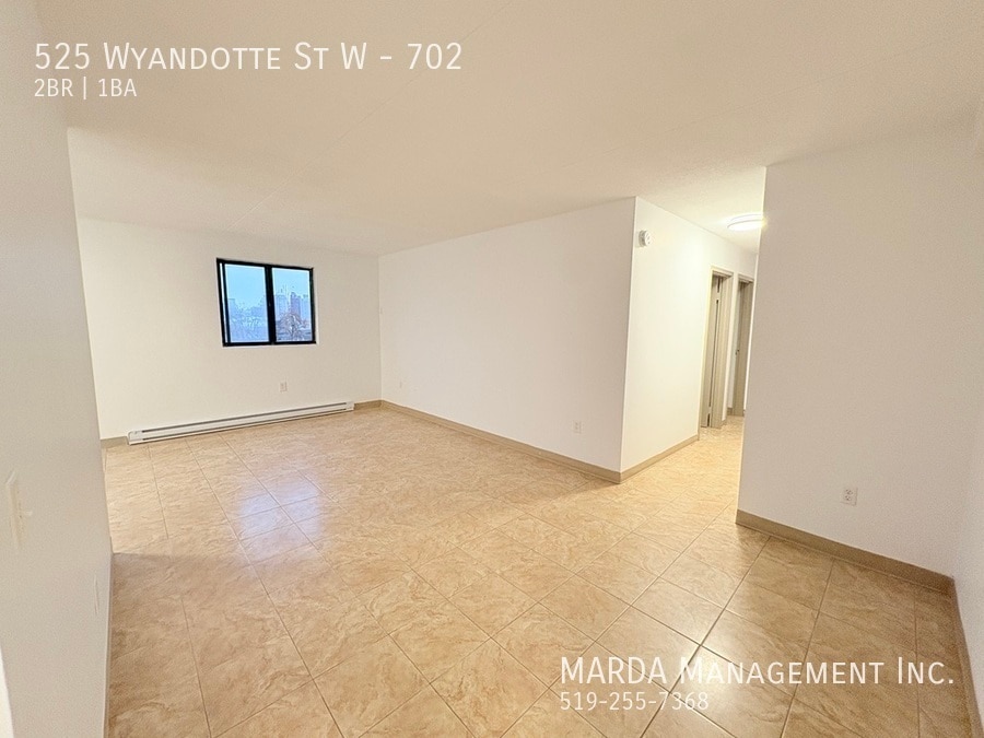Welcome to 525 Wyandotte St W Unit 702, a newly renovated bright and spacious 2-bedroom, 1-bathroom apartment located on the 7th floor of a well-maintained building with elevator. This freshly painted and recently renovated unit offers plenty of living space and comfort throughout. The open layout features tile flooring throughout for easy maintenance, large windows that fill the space with natural light, and an abundance of closet space for extra storage. The kitchen and living area flow seamlessly together, with walkout access to your private balcony perfect for enjoying the outdoors or relaxing after a long day. This apartment also includes one assigned underground parking space (for Unit 702), providing both convenience and security. Located on Wyandotte & Bruce close to shopping, restaurants, parks, and public transit, this property offers accessibility and urban living at its best. All utilities are included with a $50 hydro cap. First and last months rent and a credit check are required. Professionally managed by MARDA Management, offering 24/7 maintenance support and easy rent payment options. Call MARDA MANAGEMENT today at or email to schedule your viewing! Coin Operated Laundry Freshly Painted Laminate Flooring No Smoking Allowed Pet Friendly