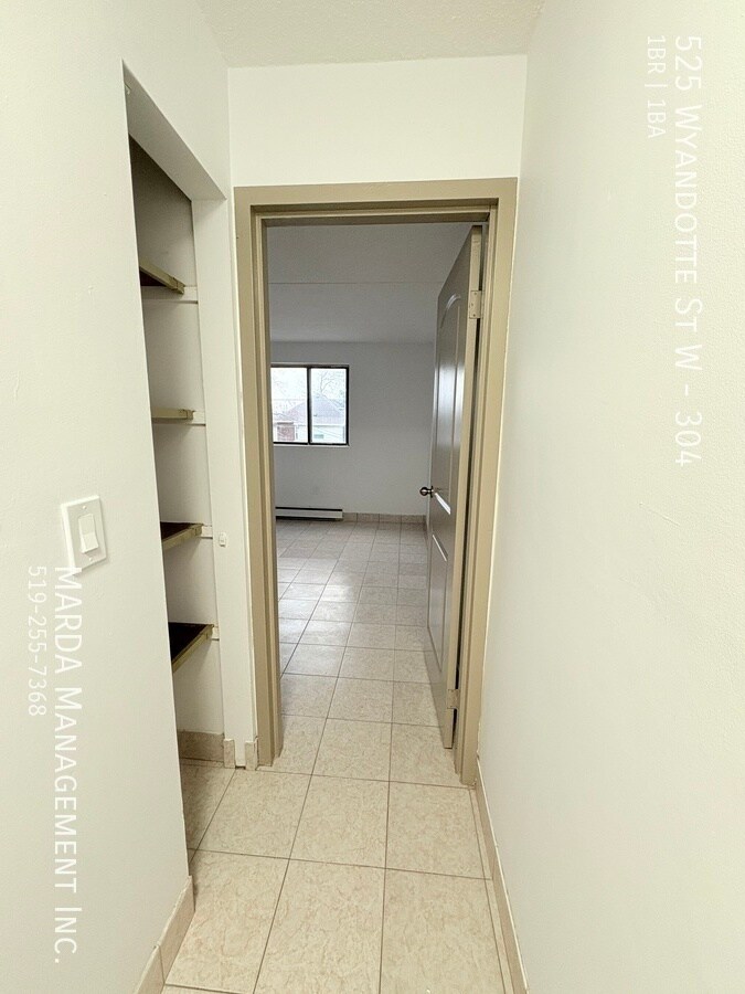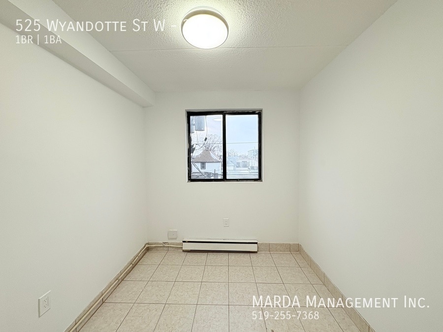Welcome to 525 Wyandotte St W Unit 304, a freshly painted bright and spacious 1 -bedroom, 1-bathroom + den apartment located on the third level of a well-maintained building with an elevator. This unit offers plenty of living space and comfort throughout. The open layout features tile flooring throughout for easy maintenance, large windows that fill the space with natural light, and an abundance of closet space for extra storage. The kitchen and living area flow seamlessly together, with private balcony for enjoying the outdoors or relaxing after a long day. This apartment also includes one assigned underground parking space (for Unit 304), providing both convenience and security. Located close to shopping, restaurants, parks, and public transit, this property offers accessibility and urban living at its best. All utilities are included with a $50 hydro cap. First and last months rent and a credit check are required. Professionally managed by MARDA Management, offering 24/7 maintenance support and easy rent payment options. Call MARDA MANAGEMENT today at or email to schedule your viewing! Coin Operated Laundry Freshly Painted No Smoking Allowed Pet Friendly