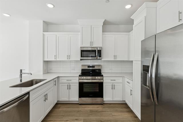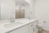 CB JENI HOMES HARPER floor plan. This charming 2 bedroom, 2 bath townhome is a beautiful END UNIT home with extra windows that provide a generous amount of natural light! The open living and kitchen area, primary bedroom and bath are all on the 2nd floor. Designer packages and high end finishes! Includes quartz countertops in kitchen and both bathrooms, luxury vinyl plank flooring, modern tile colors and so much more. The guest bedroom and 2nd full bathroom are located on the first floor so your guests will have privacy. Incredibly energy efficient with tankless hot water heater & dual WIFI programmable thermostats. Security System included and HOA maintains yard!