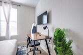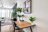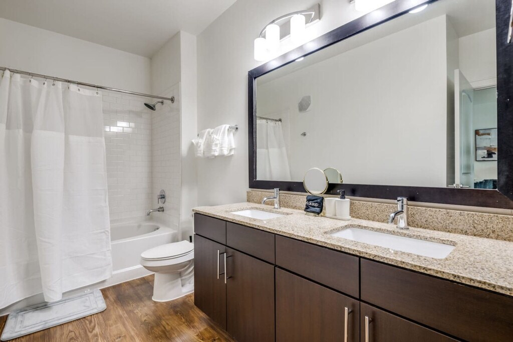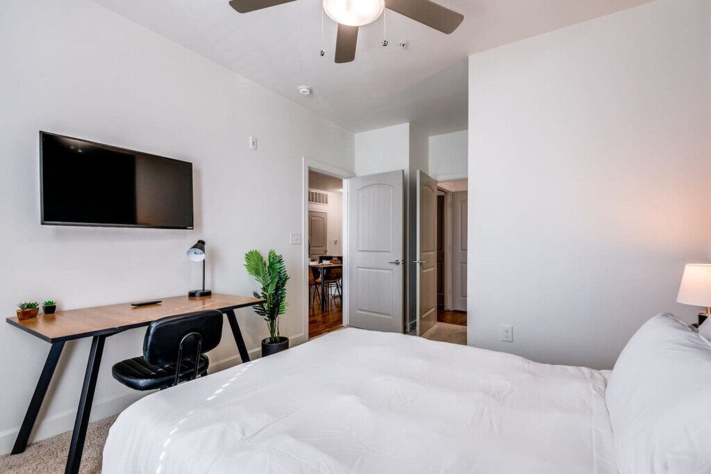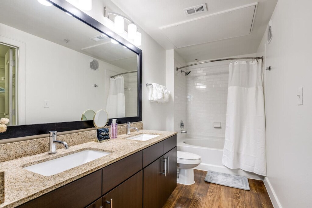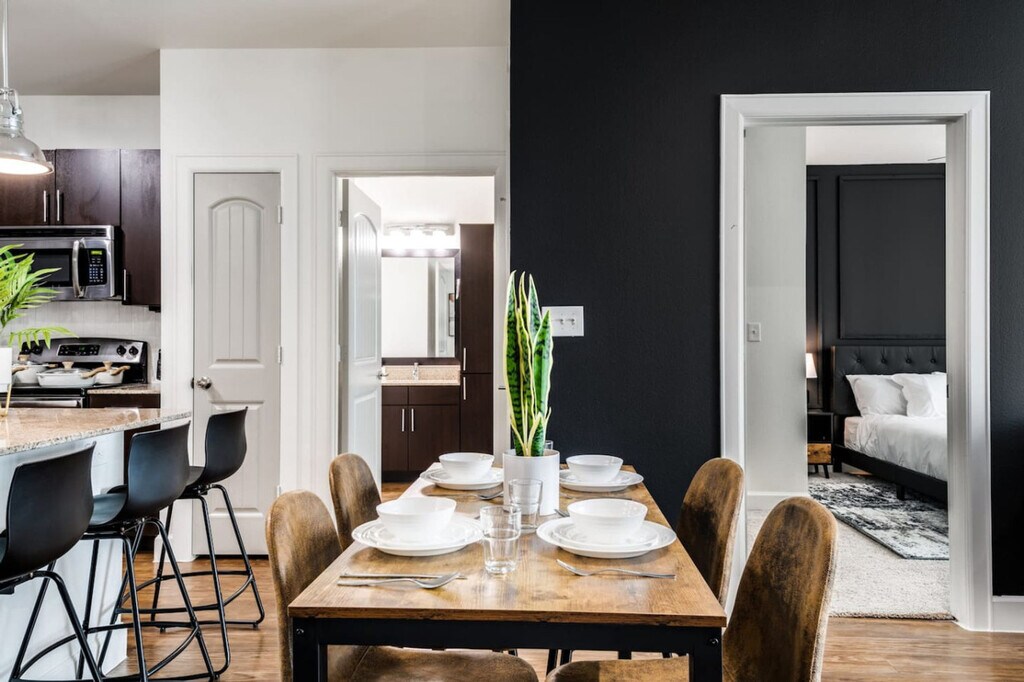 Feel at home in this newly renovated 2-bedroom, 2-bath apartment in Frisco, TX. This apartment seamlessly combines comfort and convenience. The apartment features brand-new, high-end furnishings and upscale decor, including granite countertops, a kitchen island, and stainless steel appliances. The fully equipped kitchen includes complimentary coffee and tea. For entertainment, there is a 50" smart TV with live cable and Netflix. The apartment also features memory foam beds and in-unit laundry. Enjoy free on-site and street parking, or complimentary garage parking. Gym access is also available. Pets are welcome with a fee of $100 per pet for 1-2 nights, $150 per pet for 3-6 nights, $250 per pet for 7-29 nights, or $300 per pet per month for 30+ nights. Note that pets over 50lbs are not allowed. Centrally located near Legacy West, this Frisco apartment offers easy access to shopping, dining, and entertainment. Explore nearby attractions like The Star, Toyota HQ, JP Morgan Chase, Stonebriar Centre, Legacy West, The Shops at Legacy, Stonebriar Country Club, Dr. Pepper Ballpark, and Toyota Stadium. It's also just 5 minutes from major employers such as Toyota, JPMorgan Chase, Ericsson, and PepsiCo, with convenient access to roads, highways, and grocery stores. A strict no-party policy is enforced. Ring cameras monitor the entrance, and noise detectors are installed inside. Unauthorized guests at the unit or pool will incur a $100 fine per person. Smoking, drug, and vape use is not allowed inside the unit, on the balcony, or in the hallways of the building and will result in a $1000 fine. Quiet hours are strictly observed from 10pm to 8am, and parties are not allowed, with a $1000 fine for violations. If an excessive mess is discovered after your stay, you will be charged accordingly on top of the standard cleaning fee. You will be charged for stained or damaged sheets/towels. There is a $600 penalty for lost keys/clicker/fob. [SI]