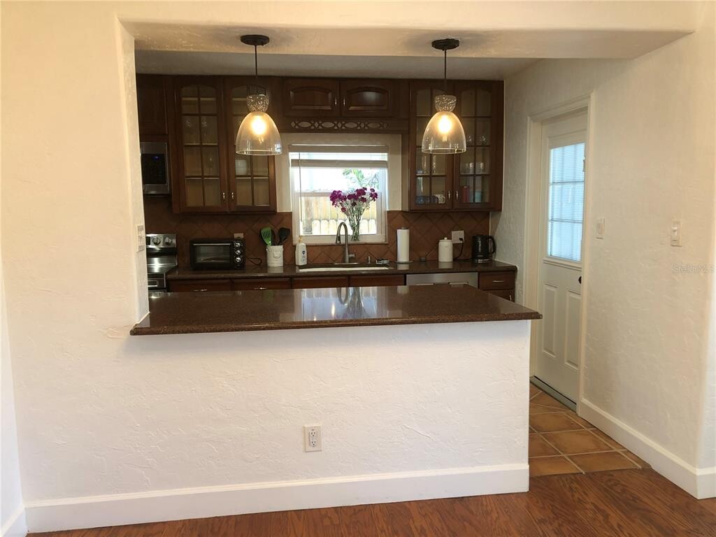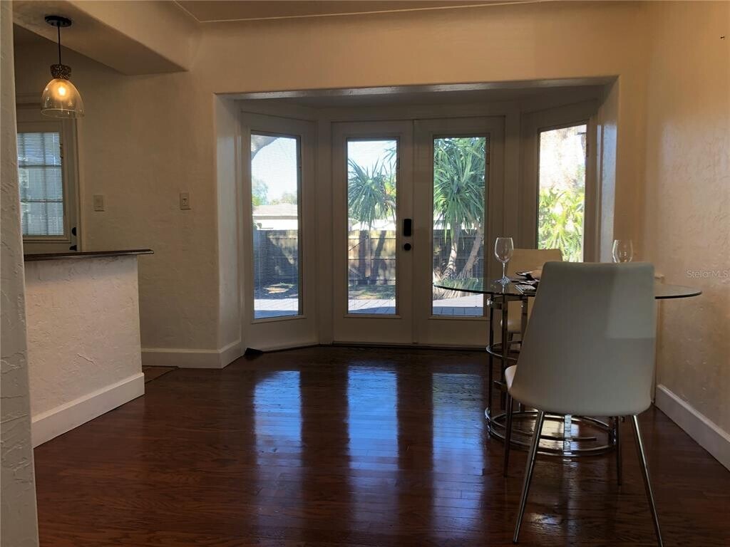 Live in the heart of St. Petersburg,just minutes from downtown and some of the areas most stunning Gulf beaches. This bright,beautifully maintained home has just become available for lease and is ready to welcome a considerate tenant who will appreciate its comfort and style. Tucked just two blocks off the Central Avenue corridor in the charming Live Oaks neighborhood,this two bedroom residence offers an open,updated floor plan ideal for modern living. Newer installed engineered hardwood floors flow through the living and dining areas,bringing warmth that pairs perfectly with the kitchens rich cabinetry and granite countertops. A spacious island anchors the space,offering generous seating and a natural gathering point. French doors lead to an elevated rear deck an inviting spot for relaxing or hosting friends. The fenced backyard,complete with alley access,provides excellent privacy. The converted garage offers abundant storage for kayaks,bikes,golf clubs,or any of your favorite hobbies. A newly added laundry area with updated appliances enhances everyday convenience. Both bedrooms feature either step in closets,ensuring plenty of storage. And if you love the charm of brick streets and easy access to beaches,restaurants,shopping,and the new CMX Cinemas Tyrone Luxury 10,you'll feel right at home here. Downtown St. Petersburgs vibrant waterfront is only minutes away,including cultural landmarks such as the Dal Museum,the Museum of Fine Arts,the St. Pete Pier,and more. Apply today and discover your ideal St. Petersburg rental home. Minimum 650 credit score required. (Furniture shown in photos is for staging purposes only.) MLS# TB8469871