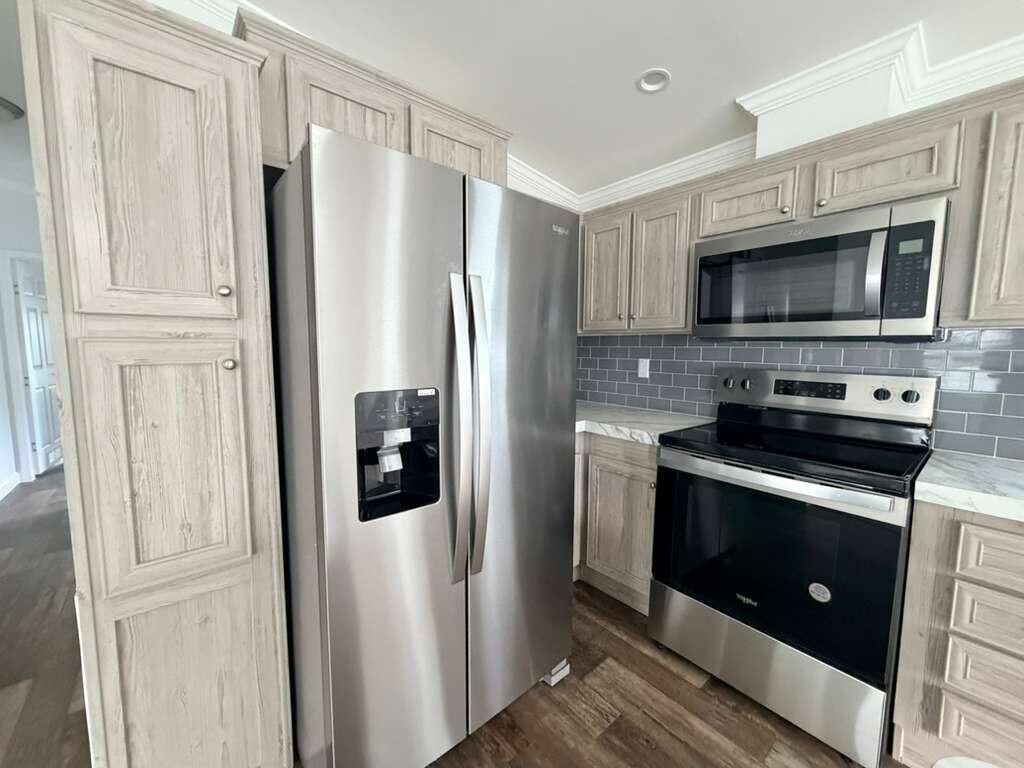 Welcome to Everglades Lakes, a 55+ age-qualified active and vibrant community, where your dream home is coming to life. We are excited to offer a brand new, beautiful 2025, 3 bed, 2 bath home for sale, featuring approximately 1198.08 sq ft of thoughtfully designed living space. Located in Davie, this property will offer the perfect blend of modern design and timeless comfort. You'll be able to step inside and experience an open-concept floor plan, hardwood floors, high ceilings, and natural light. The kitchen features energy efficient appliances, including a smooth top electric range, side by side refrigerator with water and ice maker, and a space saving over the range microwave, perfect for both everyday living and entertaining. This home features a spacious master bedroom designed for relaxation, complete with a private ensuite bathroom and a modern walk-in shower for a spa-like experience. Outside you will enjoy low-maintenance landscaping, beautiful trees and lush greenery that is ideal for entertaining or unwinding. Everglades Lakes features premium amenities designed for comfort and convenience, including a clubhouse, two swimming pools, fitness center, a dog park, and shuffleboard court. Conveniently situated near major highways and entertainment options, you'll have everything you need just minutes away. Whether you're looking for relaxation or recreation, this vibrant community has it all. Everything you need will be just minutes away. Now is the perfect time to secure your brand-new home and watch your vision take shape.The 2026 lot rent and charges for this home will be $1,366.56. Contact us today for more information or to reserve your lot in Everglades Lakes! Web Ad Map Coming Soon!