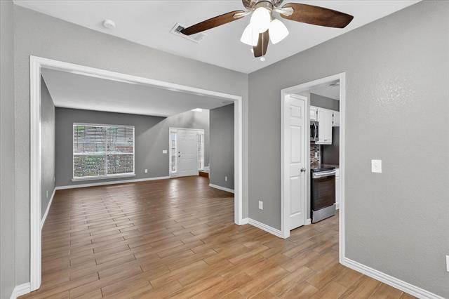 Refreshingly updated and beautifully maintained, this spacious home offers 4 bedrooms, 2.5 bathrooms, two generous living areas, and two dining spaces designed for both everyday comfort and effortless entertaining. Thoughtful details include ceiling fans throughout, a striking wrought-iron spindle staircase, decorative lighting, and warm, welcoming interior tones that create an inviting atmosphere from the moment you step inside. The large backyard provides plenty of room for gatherings, play, or future outdoor enhancements. Adding even more convenience, the home comes equipped with a refrigerator, washer, and dryer. Ideally situated near major roads, shopping destinations, restaurants, and a variety of commercial amenities, this property blends comfort, style, and accessibility in one appealing package.