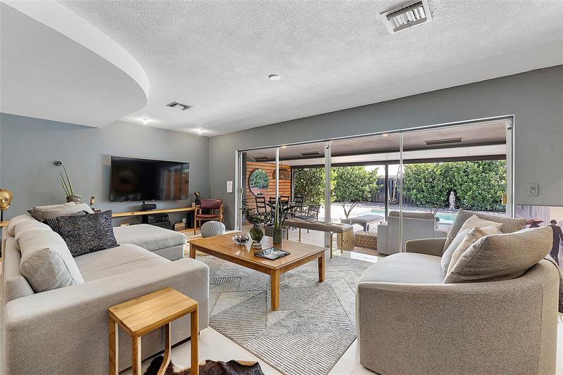 This stunning residence offers a heated sports pool designed for lap swimming and volleyball, surrounded by multiple lounging areas, including a pergola with TV—perfect for relaxing and enjoying the serene pool views. Inside, the home is fully furnished and stylishly decorated in classic mid-century modern design. Amenities include a dedicated exercise area, grandstand-style massage space, outdoor shower, and a private guest suite with a separate entrance. Nestled amid lush, mature landscaping, this home offers exceptional privacy and comfort. It’s also conveniently close to top private schools, including Pine Crest School and Westminster Academy. Experience elegance, convenience, and resort-style living—all in one extraordinary Fort Lauderdale rental.