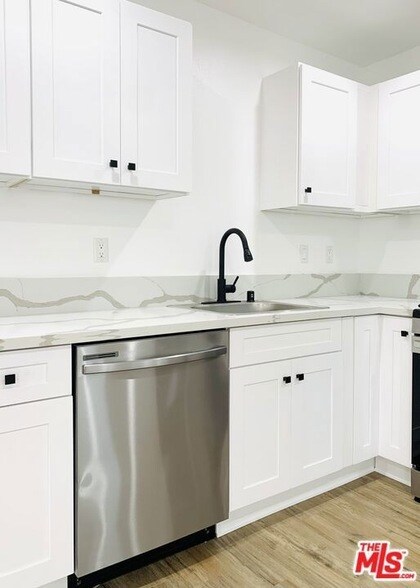 Modern, remodeled two bedroom two bath in prime North Hollywood available now. Located on super quiet street this open concept floor plan features new grey hardwood style floors throughout, newer windows and blinds with large living and dining room space. Modern kitchen features new sparkling white quartz countertops, white cabinetry, all new stainless steel appliances including, stove, dishwasher and double door refrigerator. Stackable washer and dryer too! Gorgeous bathrooms have custom fixtures and lighting. Large bedrooms have modern ceiling fan and nice closet space. Property features custom exterior decor, modern lighting, secure fencing including gated driveway entry and modern landscaping. Pet friendly and 1 carport parking with large storage bin. Great location on rare cul de sac with good street parking too. Just minutes to downtown NoHo! *Pics ae of similar unit. MLS ID 26817355