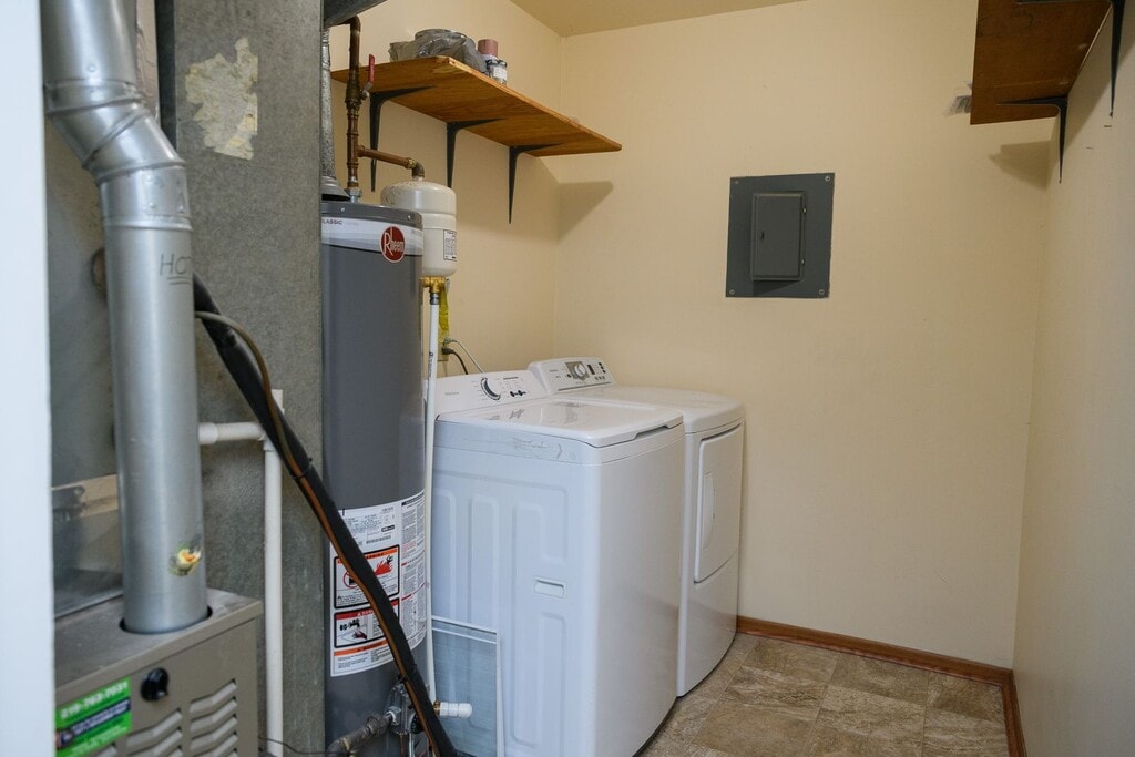 Welcome to this charming 2-bedroom, 1-bathroom townhouse located in the vibrant community of Portage, IN. This home boasts a welcoming front porch, perfect for enjoying the outdoors. The property also features off-street parking and a private driveway, providing ample space for your vehicles. The duplex is conveniently situated close to major highways and shopping centers, making your daily commute and errands a breeze. The interior of the home is just as impressive, with a sliding back door that leads to a deck overlooking a large shared yard, offering a great space for outdoor activities. Additionally, the unit comes with a washer and dryer, adding to the convenience of this lovely home. Experience the perfect blend of comfort and convenience in this Portage townhouse.