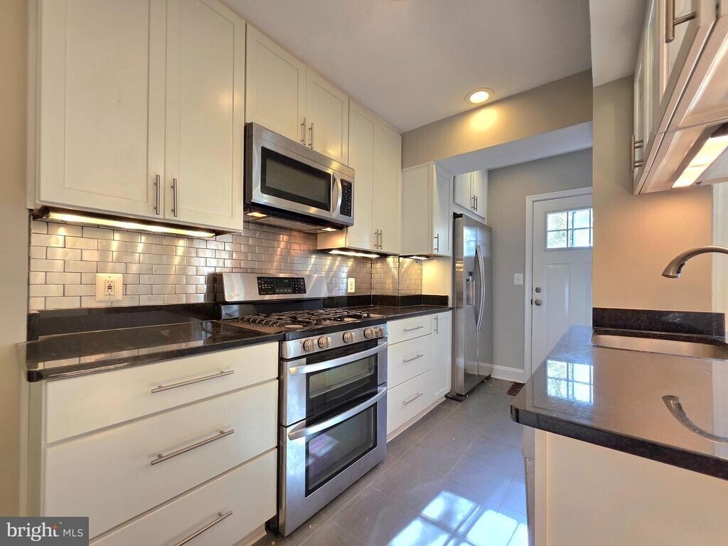 Welcome to 527 E Nelson Avenue, a beautifully updated 2-bedroom, 2-bath brick townhouse on a quaint, garden-like street in the heart of Del Ray. This charming home blends classic character with modern upgrades throughout. The main and upper levels feature gleaming hardwood floors, fresh paint, and updated windows that fill the home with natural light. The renovated kitchen boasts white shaker cabinets, black granite countertops, stainless steel appliances, a gas stove, and recessed lighting, opening to a composite deck perfect for morning coffee or evening gatherings. Step outside to a large fenced-in yard complete with a stone patio, storage shed, and a rear gate providing convenient access to your dedicated parking space in the back alleyway. The fully finished basement offers additional living space with laminate wood flooring, recessed lighting, a full bath, washer and dryer, and a utility room with extra storage. A walk-out to the backyard adds flexibility and easy access for entertaining or relaxation. Located just steps from Del Ray’s beloved shops, cafés, and parks—and minutes from Old Town, National Landing, and Metro—this home combines timeless charm, modern convenience, and a truly accessible lifestyle in one of Alexandria’s most sought-after neighborhoods. 6 mo Lease term considered if lease starts before January 1st. Will accept 1 dog up to 75 lbs. No cats.