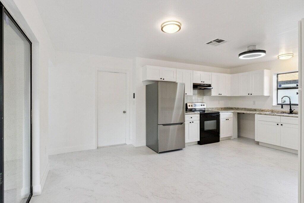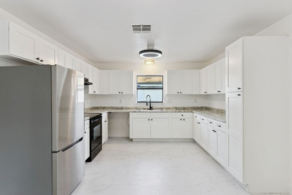 Welcome to 527 Glade Court, a completely renovated, move-in-ready 4-bedroom home offering modern finishes, efficient living, and an easy, stress-free rental experience. Every inch of this home has been thoughtfully updated—this is not a partial refresh, but a top-to-bottom renovation designed for comfort, durability, and clean contemporary style. The heart of the home is the brand-new kitchen, featuring all new stainless-steel appliances, including a refrigerator and dishwasher, paired with crisp cabinetry, modern countertops, and an open, functional layout that flows seamlessly into the living and dining areas. Whether you cook daily or entertain often, this kitchen feels fresh, bright, and efficient. This home offers four well-sized bedrooms, providing flexibility for families, remote work setups, or guest space. Both luxury bathrooms are completely brand new, finished with modern vanities, sleek fixtures, and clean tile work—everything feels unused, polished, and hotel-quality. Throughout the home, you’ll find new flooring, fresh paint, updated lighting, and modern finishes, creating a cohesive, minimalist aesthetic that feels both upscale and easy to maintain. The layout is practical, energy-efficient, and designed for everyday living without wasted space. Step outside to a covered rear porch, perfect for morning coffee, evening relaxation, or weekend gatherings. The fully fenced backyard offers privacy and security—ideal for families, pets, or anyone who values outdoor space without the upkeep of oversized lots. Residents enjoy access to two community pools, multiple neighborhood parks, and open green spaces, adding resort-style amenities without resort-style costs. The community is quiet, well-kept, and conveniently located. Location is a major advantage: • 45 Minutes from Walt Disney World and major attractions • Close to AdventHealth, Orlando Health, and area medical centers • Near Walmart, grocery stores, shopping plazas, and dining • Easy access to major roads for commuting throughout Kissimmee and Orlando Most importantly, this is a simple, straightforward rental—no big corporate management, no excessive fees, and no unnecessary hurdles. The goal is an easy move-in process, clear communication, and a well-maintained home you can enjoy from day one. We can work with less than perfect credit. If you’re looking for a modern, clean, fully renovated home in a prime Kissimmee location—this property checks every box.