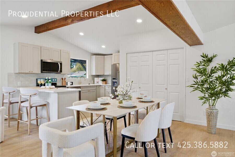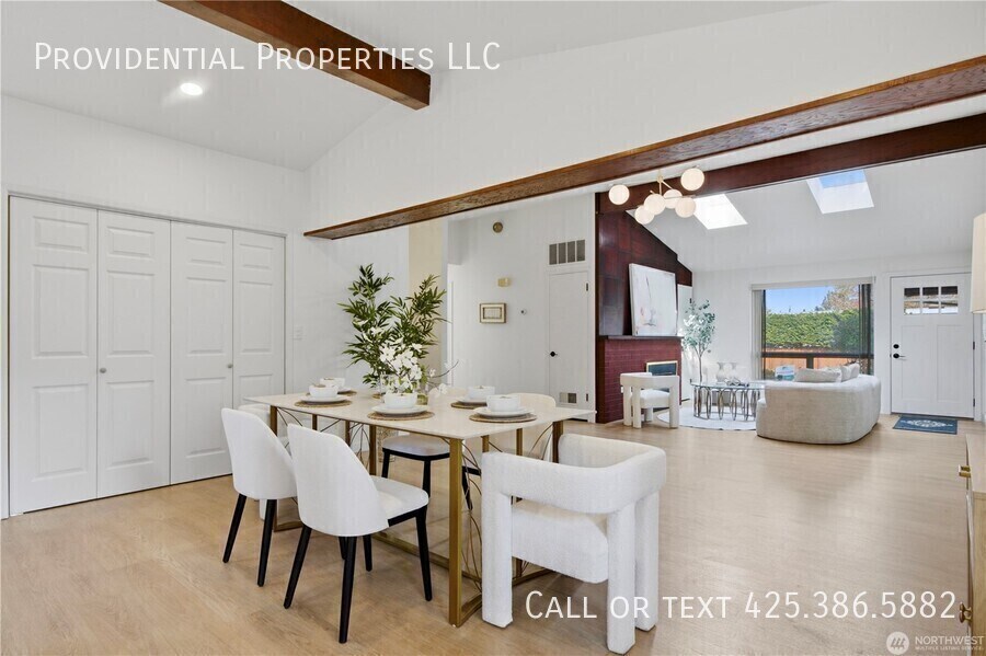 Beautifully remodeled single-level 3-bedroom home in the heart of Shoreline, offering modern comfort and a spacious, functional layout. This light-filled home features a vaulted living room with skylights and a cozy gas fireplace, creating a bright and inviting living space. The open-concept kitchen is fully updated with quartz countertops, stainless steel appliances, and flows seamlessly into a generous dining area—perfect for everyday living and entertaining. The large primary bedroom includes a sitting area and overlooks the private backyard. Two additional bedrooms are well-sized, ideal for guests, a home office, or flexible use. Ample storage throughout. Everything is updated, including interior and exterior paint, flooring, bathrooms, roof, crawlspace, appliances, and lighting—move-in ready. Enjoy a south-facing, fully fenced flat yard with patio, lawn, and BBQ space—great for outdoor living. Carport plus RV parking available. Prime location with easy access to I-5, light rail, Costco, shopping, parks, and public transit. - Tenants pay all utilities. - First, last and security deposit to move in. - 12 months or longer lease preferred. - Pets allowed, max 2 pets; monthly pet rent $50/pet - No Smoking - Income 3X the rent, with credit score of 700 and up for all adult's applicants. - Application not accepted without a showing. - Zillow application not accepted.