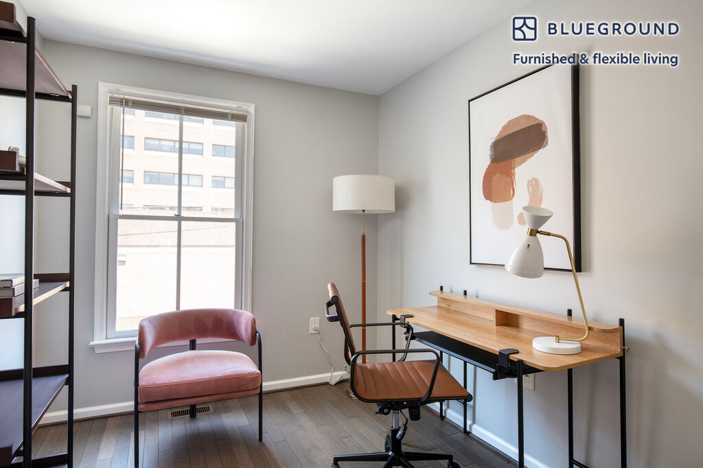 Discover the best of Washington, D.C., with this two bedroom apartment in Le Droit Park. It’ll be easy to simply show up and start living in this furnished apartment with its fully equipped kitchen, living room, and our dedicated, on-the-ground support. (ID #WDC689) The advertised rate of $2,960/month is the lowest available price, based on a 1 month(s) and 3 day(s) stay with a move-in date of December 9, 2025. If you’re looking for a 1-year stay, the rate is $4,060/month. Rates vary depending on the duration of stay, season, and other parameters. For exact pricing and additional pricing components, please visit our website and enter your desired move-in and move-out dates. The rate is applicable when billed upfront; it can be higher if billed in multiple payments. Brokers are welcome to reach out. Were you looking for an unfurnished lease? Try Blueground instead and upgrade from unfurnished to furnished living: - Furnished at rates comparable to unfurnished - No setup or furniture costs - save thousands - Move-in ready - save time, just bring your suitcase Designed with you in mind As with any Blueground apartment, you’ll find a thoughtfully designed space complete with beautiful furniture and a fully equipped kitchen in this two bedroom property. And, thanks to our superior quality mattresses, luxury linens, and towels, you can relax knowing you’ll always feel comfortably at home. When you’re ready for some fun, you can take in the Washington, D.C. vibes or bring the entertainment to you with the premium wireless speaker or smart TV. This apartment also offers in-apartment laundry. Sleeping arrangements Queen Bed, 63in/160cm Queen Bed, 63in/160cm Amenities Building amenities unique to this two bedroom apartment include an on-site: - Dryer - Washing machine - Parking Arrival and ongoing support The entire apartment is yours to enjoy! Throughout your stay, you’ll have access to our Client Experience team through the Blueground App. You can schedule additional cleanings, submit maintenance requests, and view our neighborhood recommendations with just a few taps. We’ll share all details upon confirmation of your stay. Other things to note Building amenities may have an extra cost. This Blueground apartment has flexible lease options, allowing you to book it for one month, a year, or more. Parking is offered based on availability and is subject to a fee. Please keep in mind that this is a walk up building. We take great pride in ensuring every photo displayed is shot in our own units with our actual furnishings. That said, we regularly refresh our decor and furniture arrangement, which may differ from what’s pictured. [GO]