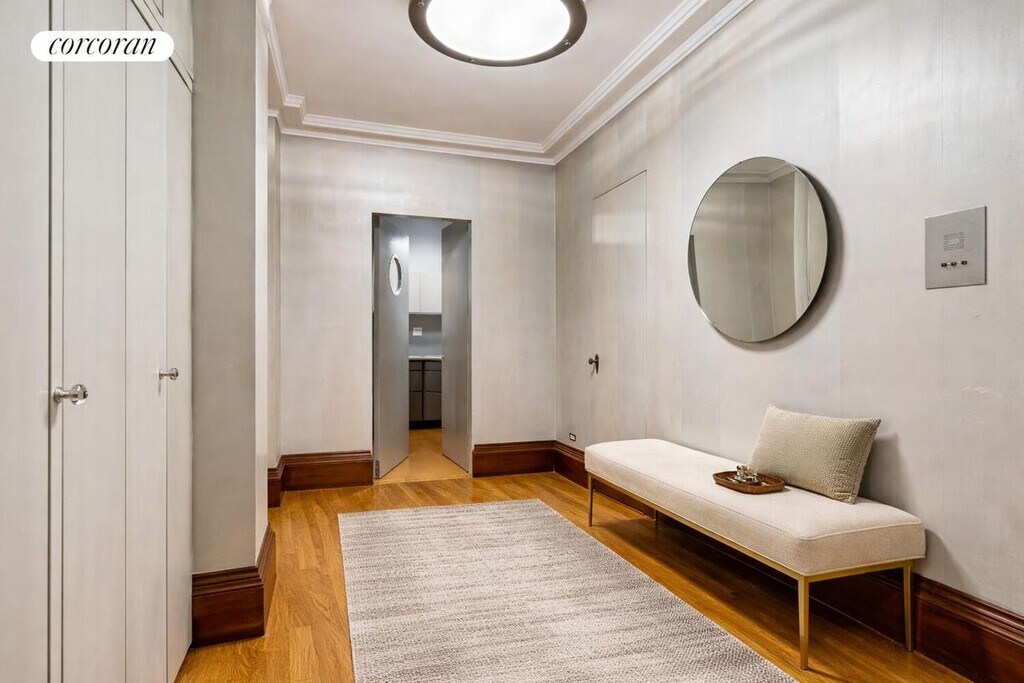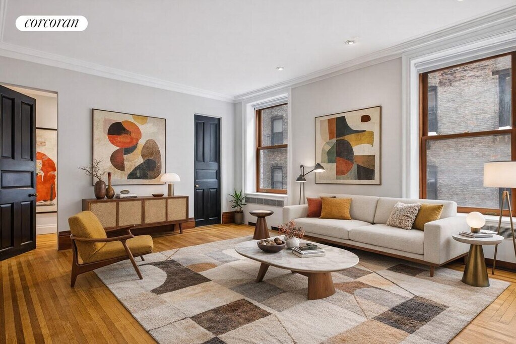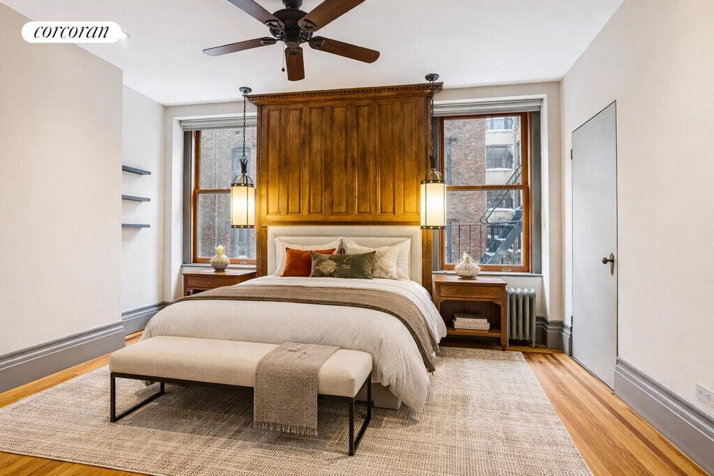 This beautiful prewar two-bedroom, two-bathroom home seamlessly blends timeless charm with modern sophistication. The custom-designed kitchen features natural quartz countertops and bespoke cabinetry, while original restored hardwood floors and oversized wood-framed windows create a bright yet tranquil atmosphere throughout. The primary suite boasts a spa-like ensuite bathroom with a large walk-in shower and an exceptional outfitted walk-in closet. Thoughtful architectural enhancements throughout the home pay homage to the building's turn-of-the-century origins while delivering contemporary comfort.Set within The Britannia Condominium, a distinguished prewar building with a part-time doorman, live-in Resident Manager, on-site laundry, and additional storage.