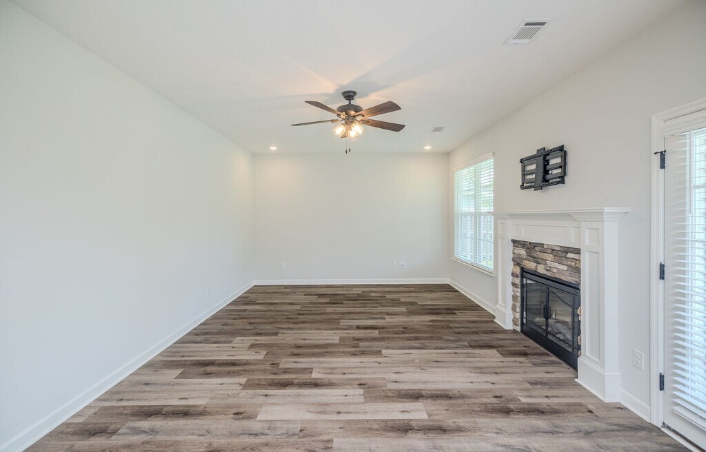Available 04/01/2026! Welcome to this gorgeous 4 bedroom, 2 1/2 bath home! This is a no pets, no roommates and no smoking home. Minimum credit score for every adult that would be living in this home is 675. Front covered porch and covered back porch! LVP flooring in downstairs living area: Great room, formal dining room, kitchen, great room and breakfast area. Lots of windows for natural light with 2 inch faux wood blinds throughout. High ceilings and open floor plan! Home is 5 years young! Kitchen with granite countertops, island, stainless appliances, including refrigerator, a power pantry with additional storage and butlers passage between kitchen and dining room. Breakfast room with bay window open to great room with stone surround fireplace. All bedrooms are up. Master has sitting area and Master bath with double vanities, separate shower with glass shower door and garden tub. Bedrooms 2, 3 and 4 are spacious with large closets. Carpet in bedrooms only. Bedroom 4 also has large picture window. upstairs laundry for convenience and washer and dryer remains. This home is total electricity for energy efficiency. Very private backyard with Privacy fence, timer control sprinkler system, 2 car garage with automatic opener. This subdivision has a community pool and pavilion that is optional. If Tenant wants to have access to the pool, the fee is 500 per season. Tenant is responsible for pest control. 2 miles from Fort Eisenhower gate one and two, convenient to interstate, shopping, restaurants, schools and medical. Subdivision entrance has a red train station and waterfall. Subdivision has sidewalks and street lights. Pictures are current and were just taken.