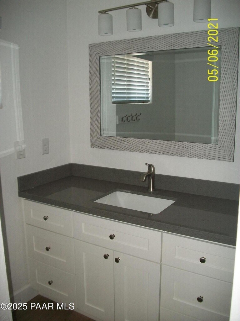 Very large remodeled 3 bed/2 bath unit in the rear of the property overlooking the creek. Open floorplan with upgraded fixtures,gray vinyl flooring,gray quartz countertops,large downstairs bedroom with full bath,2 bedrooms & full bath upstairs with large closets and decks. Quaint courtyard area with table & chairs,pet run,and common laundry room. Located between Prescott & Prescott Valley. Owner may consider 1 small pet.