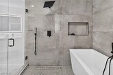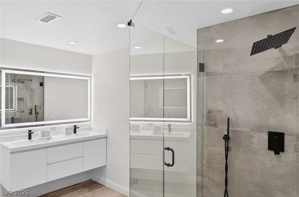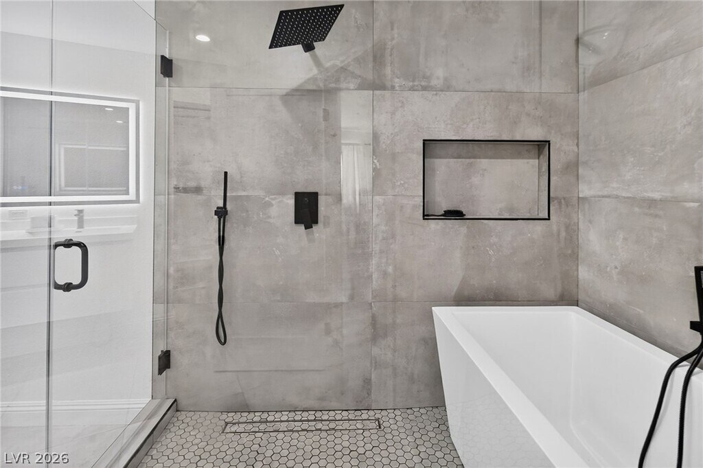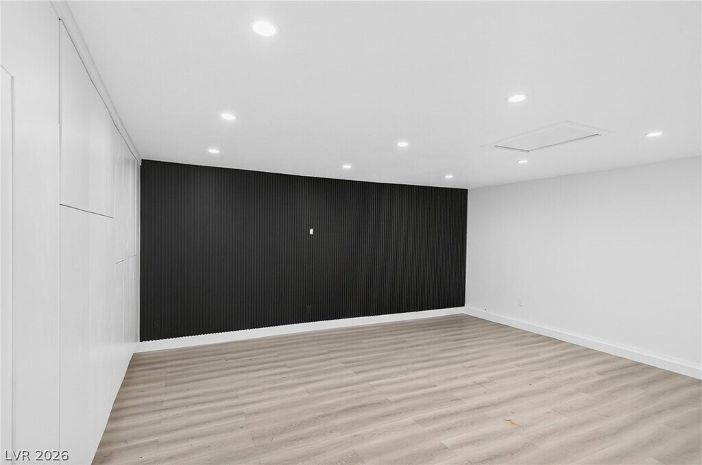 Welcome to this stunning fully renovated single-story home in the heart of Central Las Vegas! This spacious property features 4 bedrooms and 3 bathrooms, including a convenient outdoor bathroom perfect for pool days and entertaining. The home offers an open floor plan with recessed lighting throughout and a bright, modern interior complemented by a sleek black exterior design. The kitchen is a standout feature with a large island, all appliances included, a stove/oven, and plenty of cabinet space for storage. A washer and dryer are also included for added convenience. Step outside to enjoy a private backyard oasis complete with a pool and spa, a gazebo for shaded relaxation, and your very own private basketball court. The front and back yards feature low-maintenance synthetic grass, and the gated front yard adds both privacy and curb appeal. This beautifully upgraded home offers comfort, style, and great outdoor amenities.