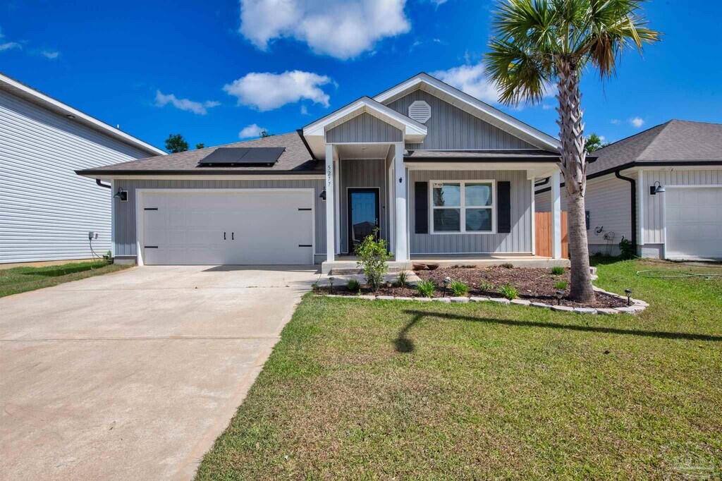 Welcome to this beautifully maintained 4-bedroom,2-bathroom home offering 1,867 square feet of comfortable living space in the heart of Pace! This thoughtfully designed home combines functionality,charm,and modern conveniences—perfect for everyday living and entertaining. Inside,you’ll find a spacious layout with a private primary suite featuring a large walk-in closet,dual vanities,and a separate toilet room for added privacy. The additional bedrooms provide plenty of space for family,guests,or a home office. A washer and dryer are included (non-warranted) for added convenience. Step outside to enjoy a fully fenced backyard complete with a stunning pergola—ideal for relaxing or hosting gatherings. A stone walkway leads to a versatile shed equipped with power and a window unit,making it a great space for a workshop,hobby area,or extra storage. This home also includes valuable upgrades such as solar panels for increased energy efficiency and a generator hookup (tenant to supply generator),offering added peace of mind. Located in a welcoming neighborhood with sidewalks,streetlights,a community park,and a splash pad,this home provides both comfort and convenience just minutes from local schools,shopping,and dining.