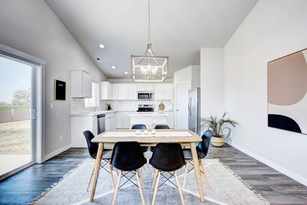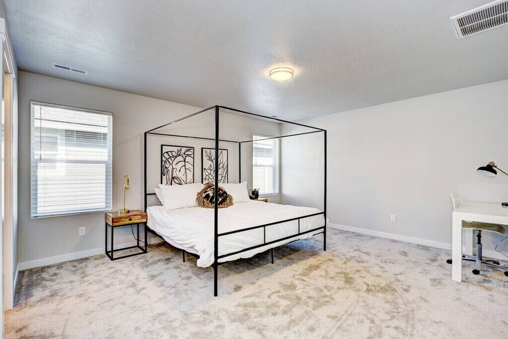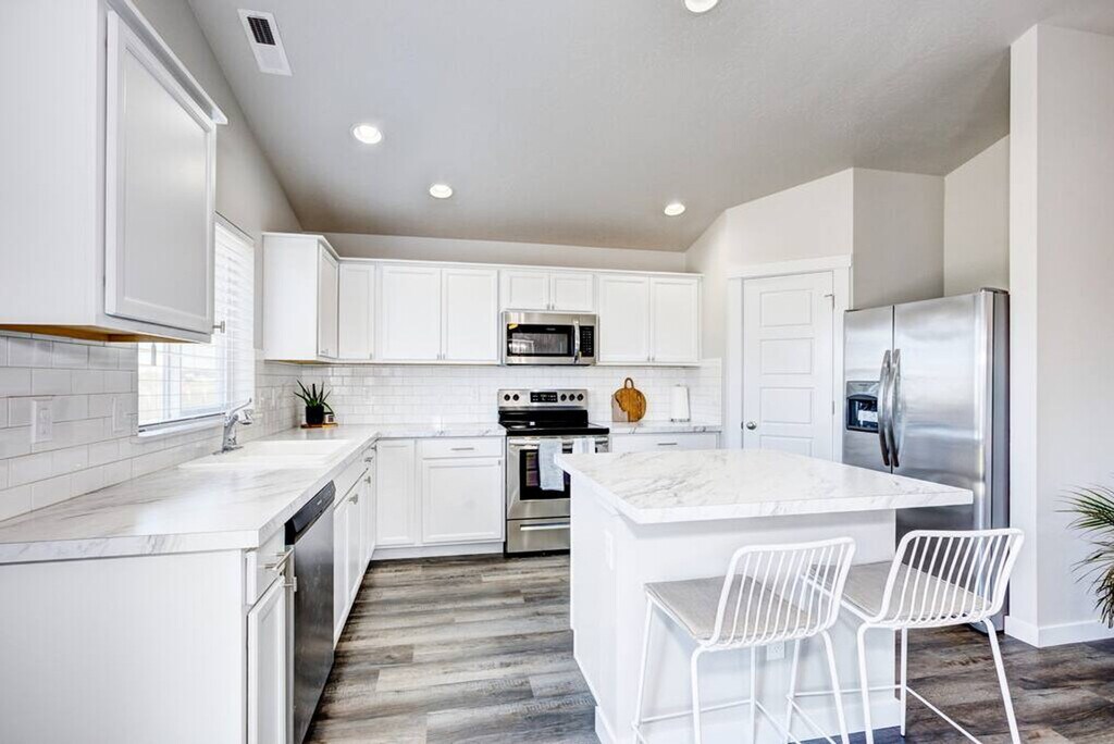 Feel at home in this beautifully decorated home, conveniently located in North Meridian. This home offers plenty of room for the whole family and large groups. This brand new home has a farmhouse feel with a fully stocked kitchen, beautiful decor, a brand new grill and patio furniture, a ping pong table, and cozy furnishings that bring the comfort of home with you. A neighborhood park across the street is just one of the features that makes this a great place for families looking to experience the Treasure Valley. Kid-friendly amenities are available upon request, including a pack 'n' play and high chair. Please reach out before your stay if you would like to request any of these as they are limited in supply. Conveniently located near shopping (a brand new Walmart, Costco, and WinCo just down the street) and outdoor adventure, yet peacefully removed from the hustle and bustle. It's a short drive from downtown, the Village outdoor mall, Boise State University (BSU), the Idaho Center, and the Boise River Greenbelt. Parking is limited to one car in the garage and two cars in the driveway. No street parking, trailers, or RVs are allowed. Smoking of any kind at any location on this property is strictly prohibited and parties are not allowed anywhere on this property (inside or out). Visitors are allowed only with written prior approval. Quiet hours are from 10:00 PM – 8:00 AM. Food and/or drink is allowed only in the kitchen and dining room, with a couple exceptions: if extra space is needed for mealtime outside of the kitchen/dining room then you may eat in the family room, and if you'd like to enjoy some popcorn or snacks while watching either of the TVs then please do, just make sure to be careful and take care of spills right away. Please don’t wear shoes inside. If any fixture, appliance, furniture, or part of the property becomes damaged or lost during your stay, please let the hosts know immediately, regardless of who may be at fault. No pets or animals are allowed at the property (inside or outside). [SI]