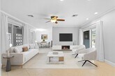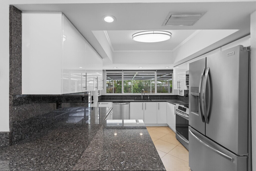 Meticulously maintained 3-bedroom,2-bath pool home featuring screened patio,oversized/finished 2-car garage,and stamped concrete circular driveway. Fully hurricane-ready. All windows/doors are impact-rated. Backup power with a generator interlock system. Yard is fenced with mature landscaping and well-fed irrigation. Kitchen and bathrooms are fully updated with soft-close cabinetry. Kitchen has Blue Pearl granite countertops and matching backsplash. Other upgrades include new carpets in bedrooms,and surround sound wiring. Smart features: biometric locks,integrated security system with cameras,and smart thermostat. 2026 pool pump,2022 garage door and opener,2018 A/C,2014 electrical panel,2014 gas water heater,2006 tile roof,not in flood zone,ALSO available for SALE $699,000. MLS ID B26016780