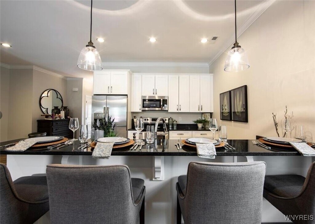 Welcome to The Residences at The Ridge These luxury patio homes are located just outside the Village of Orchard Park,offering an open floor plan with high-end finishes and thoughtful design throughout. Interior Features: • Open concept floor plan with abundant natural light • Kitchen with stainless steel appliances,granite countertops,garbage disposal,and breakfast bar • Crown molding and detailed trim throughout • Gas fireplace in the living area • Walk-out patio for entertaining or relaxing Bedrooms and Baths: • Large master suite with attached master bath • Walk-in glass shower and custom shelving in the master closet • Second bedroom/office with custom closet system Additional Features: • Laundry room/mudroom located off the garage • Attached garage with direct entry • Ample storage with custom shelving Location: • Walking distance to Chestnut Ridge Park • Close to grocery stores,pharmacies,restaurants,hotels,hospitals,and more Lease Terms: • 12-month lease required