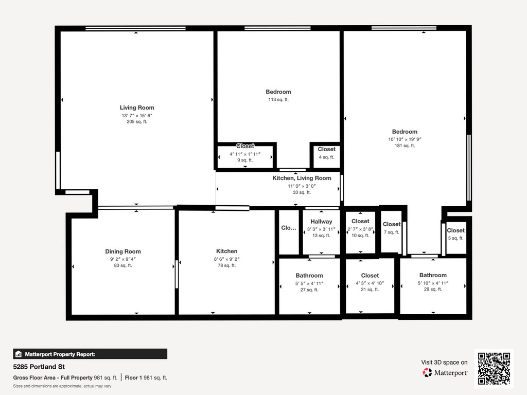 There is currently a 2 Bed 1 Bath Condo for rent with 981 sq ft listed at 5285 Portland St. It is Available Now.
