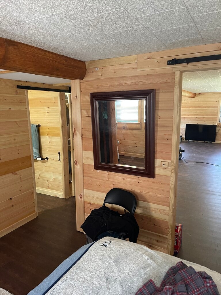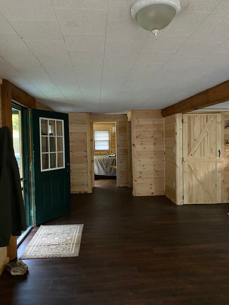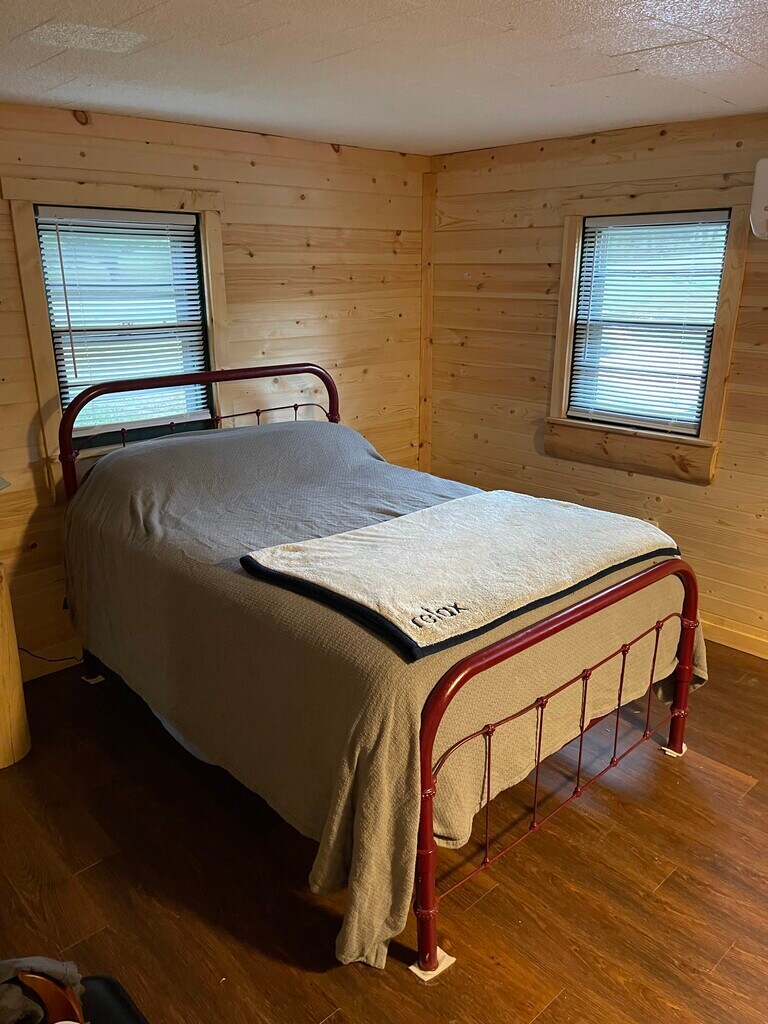 Charming log cabin . would be perfect for a retired couple all landscaping and mowing is done For you .one large bedroom, master suite, plenty of storage and closets washer and dryer is included. For a tour call bob at ,,1350 first months rent and 1350 security deposit required at signing two year lease small dogs allowed. 4 miles to lake boat ramp !! A must see !