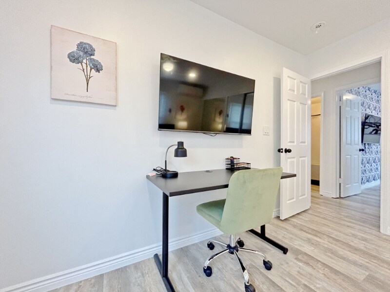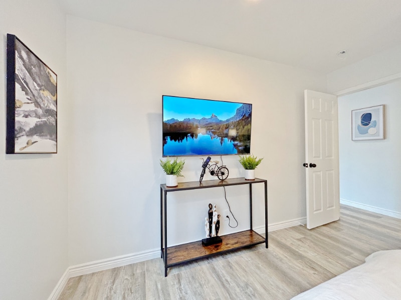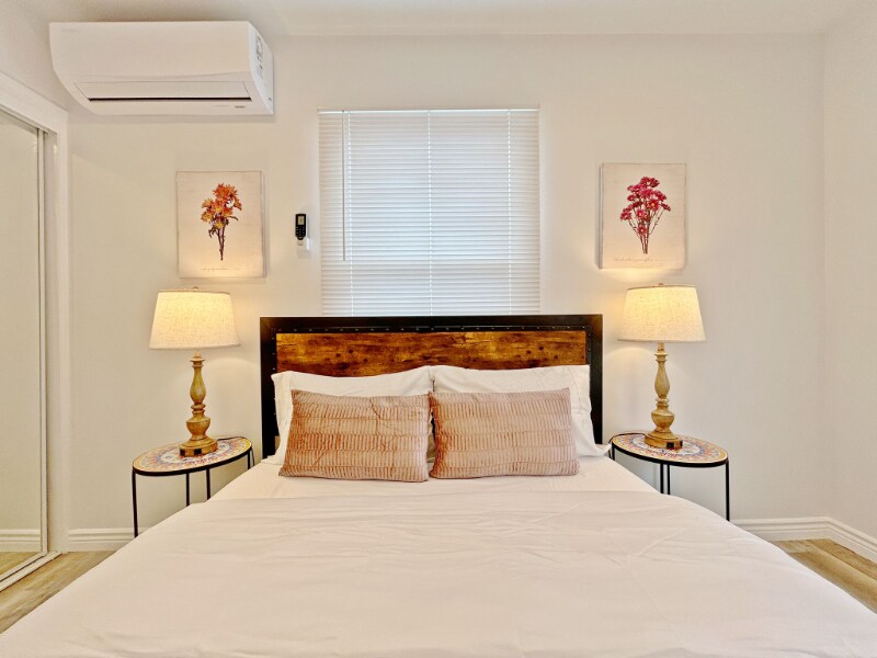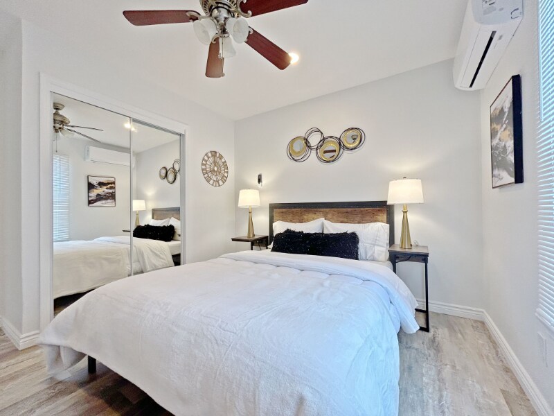 Property Id: 2396452 Available: March 22, 2026 1167 Sq. Ft. 3 Bedroom/2 Bathroom $3495/month furnished (12 month lease) $3595/month unfurnished (12 month lease) The galley kitchen features platinum hued cabinets accented with gold and clear knobs, a pristine white quartz countertop, and a beautiful white farmhouse sink. This space is both functional and stylish, perfect for culinary adventures and entertaining guests. It opens to a dedicated laundry room equipped with a washer and dryer. Each bedroom is equipped with a ceiling fan, ensuring comfort alongside the ductless cooling and heating system. The main bathroom contains a full white tub with large wavy vertical tiles. The vanity and radiant lighting breathes a farmhouse motif while maintaining the simplicity of a clean, minimalistic approach. The en suite master bath carries a consistent farmhouse theme with rustic fixtures and a waterfall faucet. Walk out of the rain shower feeling refreshed and pampered. The property is strategically designed with a perched view overlooking the neighborhood. There are two spaces for vehicles on the driveway, take a few steps and you will find yourself home with a low maintenance front yard. The rooms are elegantly furnished with plush bedding, a 50 inch Roku Smart TV with remote, and ample storage behind a mirrored sliding closet door. Space This beautifully renovated and furnished property combines modern elegance with practical living. Step inside to discover a spacious open floor plan highlighted by luxurious hardwood vinyl plank flooring that flows seamlessly throughout the home. The living areas are generously sized, with natural light pouring in through large windows, creating a bright and inviting atmosphere. The bathrooms are elegantly appointed with chic fixtures and gold/black accents. Pet rent is $50/month per pet.