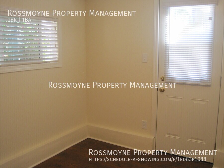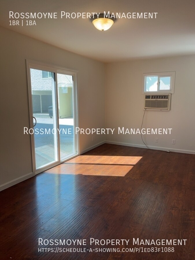Stand Alone Unit - Enter from alley south of Doran 1 Bedroom 1 Bathroom plus Bonus Room Faux wood floors Tile floor Vinyl Floor Quartz Counter Top in kitchen Dishwasher Stove Laundry hook-ups in unit Off Street Parking just outside unit No pets (Service animals and ESA exempt). Excellent Credit Required. Renters Insurance Will Be Required. (Not all appliances warranted on lease) This home is for rent exclusively by Rossmoyne Property Management. Beware of any other individual(s) (even someone claiming to be the owner of the home) who might have directed you to schedule a showing — or might have scheduled a showing for you. Do not submit any application for this home with — or pay any fees or deposits to — any party other than Rossmoyne Property Management. If you have any questions or concerns, please contact: Rossmoyne Property Management -Applications and instructions can be downloaded at ; $40 application fee per adult payable in cash, cashier's check, money order or via Paypal to Rossmoyne Property Management; proof of current verifiable income required with completed application forms. Cal DRE 00659141