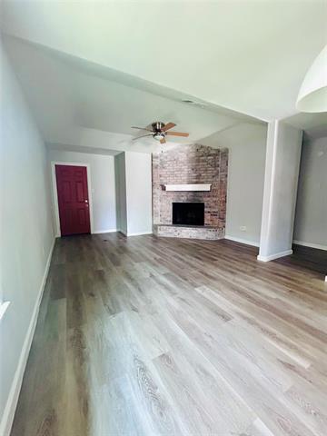 MUST SEE!!! This recently renovated cozy 2 bedrooms and 2 baths duplex located in Guerin Square Arlington, TX.. Light, bright & open floor plan. New luxury laminate plank flooring throughout the home (No carpet). Living room has corner fireplace & opens to dining room and kitchen. Kitchen has new granite counters with breakfast bar. Primary bedroom have it own private updated bathroom walk in shower. Small fenced backyard with open patio. 2 car carport parking in back alley. Easy access to major roads and shopping. -No pets and smoke -No loud music-noise. (Shared wall with older retired couple next door) -No painting or major remodel -No cable or dish is allow to be mounted on roof exterior siding (any install must be approved by landlord before install) -90days quality checks -Renter insurance is required ***All information contained within is deemed reliable, but not guaranteed. Buyer and Buyer Agent to verify all information.