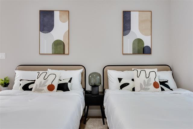 Fully furnished and truly one of a kind, this stunning home offers a breathtaking interior with a thoughtfully designed open floor plan that blends elegance, comfort, and functionality. The spacious living area is filled with abundant natural light and anchored by a cozy fireplace, creating a warm and inviting atmosphere that flows seamlessly into a beautifully appointed kitchen featuring a farmhouse sink, large center island, breakfast bar, pantry, and sleek stainless steel appliances. The primary suite serves as a private retreat, complete with a massive walk-in closet and a luxurious spa-like bathroom showcasing dual sinks, a jetted soaking tub, and a separate shower. All bedrooms are outfitted with hotel-line furniture, accessories, and linens, providing a true turnkey living experience, while the bathrooms throughout the home are equally impressive with modern finishes and refined details. With no carpet and no popcorn ceilings anywhere in the home, the space feels bright, airy, and thoroughly modern. Step outside to enjoy your own backyard oasis, highlighted by a gorgeous pool and jacuzzi—perfect for relaxing or entertaining. This exceptional home offers the perfect balance of convenience and tranquility and is fully ready to welcome you.
