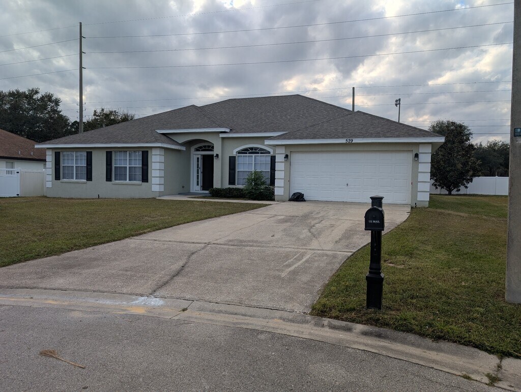 529 Pintail Circle is a single-family house in Oak North Crossing. The house is move-in ready. Enjoy four full bedrooms, three full bathrooms and a two-car garage. The house has new hard wood and carpet floor, new kitchen appliances- an electric stove and a refrigerator, all rated energy efficient. Get your money's worth in a desirable house in a gated community. Dollar per square footage, 529 Pintail Circle saves you money on a mortgage for a comparable house in a comparable community and location. 529 Pintail Circle is off Berkley Road (Rt.655), across from Lake Myrtle Sports Complex in Auburndale. Oak North Crossing offers security and peace of mind. It is minutes from I-4 and under two-hours' drive to Tampa and Orlando airports. The house is within 1-5 miles of Walmart, Publix, Lowe's, Lakeland Regional Health Medical Center, Winter Haven Hospital and primary and high schools. Enjoy the many conveniences. Enjoy more time at home than on the road. You deserve it. Come home to peace and tranquility.