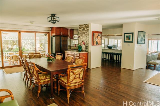 Perched in the heart of windward Oahu, this 4 BR/2 BA home invites you to slow down, breathe deep, and live where everyday feels like a getaway. Framed by the iconic Koolau ridgeline and the sparkling Pacific, the home offers an effortless indoor-outdoor lifestyle imagine sipping morning coffee on the large covered lanai with ocean breezes, and spending afternoons exploring nearby beaches and hikes, and evenings listening to the surf while the horizon fades into a tropical sunset. Thoughtfully laid out for relaxed island living, the property marries casual comfort with thoughtful finishes and natural light throughout. Expansive glass and covered lanai spaces encourage gatherings and alfresco dining, while the large yard with volleyball net offers numerous opportunities for fun, or simply soaking up the sun and coastal air. The kitchen and living areas flow together for easy entertaining, and flexible room arrangements make this a great choice whether planning an extended holiday on O'ahu or seeking a serene work-from-home retreat.