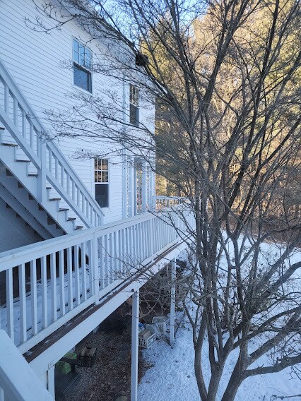 Please email if interested. Our two-bedroom, third-floor unfurnished apartment is available. Rent is 1900, month to month- tenant pays electric. Longer-term tenants preferred. House is on 3 acres, at the highest elevation in Harvard, with direct access to adjacent conservation land, and use of Bare Hill Pond. The apartment has large picture windows with incredible views and sunlight, a rear porch and private deck, parking areas, own washer and shared dryer in basement with easy access, spacious storage areas. Note that the bathroom is very small. Rental includes use of the backyard lawns, cabin, and basketball half-court. The apartment is a half mile to the Harvard General Store, Bare Hill Pond, the Harvard Town Library. References and good credit, please. Cats and small quiet dogs are okay. Please contact . Include a brief description of your situation, requirements, and any other information you think might be relevant to a rental application. Thanks in advance- we look forward to hearing from you. Janet and Phil.