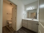 Move in special alert! FIRST MONTH'S RENT FREE! with 16 month lease. **Deposit free move in for qualified renters. PM firm has partnered with Obligo to help ease our renter's with initial move in costs. For more information please inquire** This charming townhome offers a thoughtful layout with laminate wood flooring in the main living areas and cozy carpet in the bedrooms. The open-concept kitchen overlooks the bright and spacious living room and is equipped with stainless steel appliances (refrigerator, range, dishwasher, and built-in microwave), granite countertops, ample cabinetry, two pantry closets, and a convenient breakfast bar. From the living room, glass door access leads to a private, fenced-in patio with storage closet, perfect for relaxing. A bedroom with direct access to a full bath is located on the main level. Upstairs, you'll find a split-bedroom layout, a second full bath with an oversized vanity, and a separate water closet with tub/shower combo. The laundry closet includes a stacking washer and dryer for added convenience. Located in the desirable Woodburn Townhome Community, right in the heart of Leland, you'll be close to Leland Municipal Park with its picnic areas, playground, and walking path.