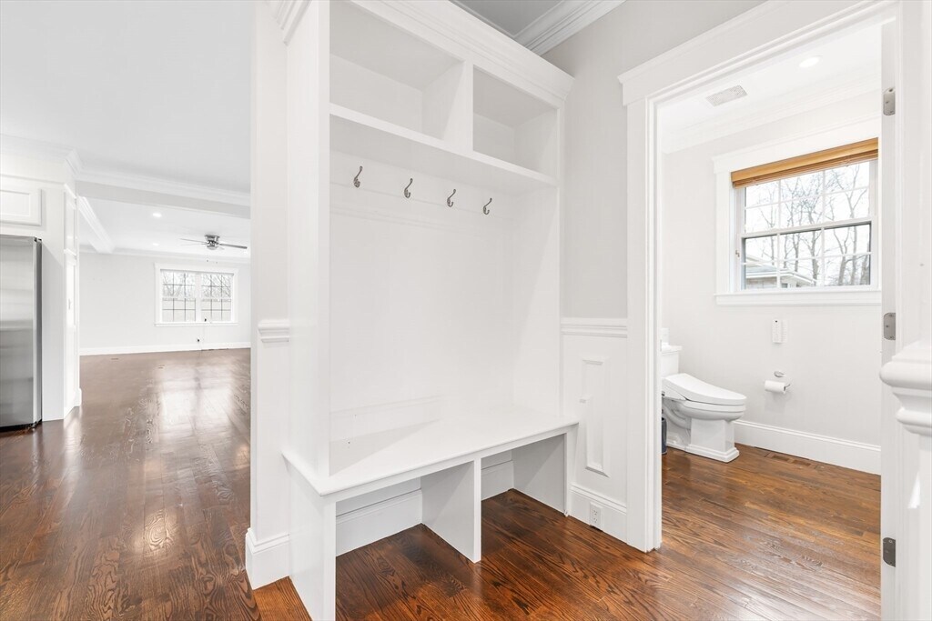 Stunning newer construction single-family home featuring high ceilings,hardwood floors,and custom millwork throughout. The expansive family room boasts a cozy gas fireplace and sliding doors that open to a private deck. The main level also includes a convenient half bath,a thoughtfully designed entryway with custom seating and storage,and a dedicated home office—ideal for remote work. Upstairs features five bedrooms,including a primary suite with walk-in closet and en-suite bath,plus a walk-up attic for extra storage. Automatic Hunter Douglas shades on the main level and primary bedroom. Two-car garage with Tesla EV chargers. Conveniently located near Mystic Lakes with easy access to Cambridge and Boston. MLS# 73492010