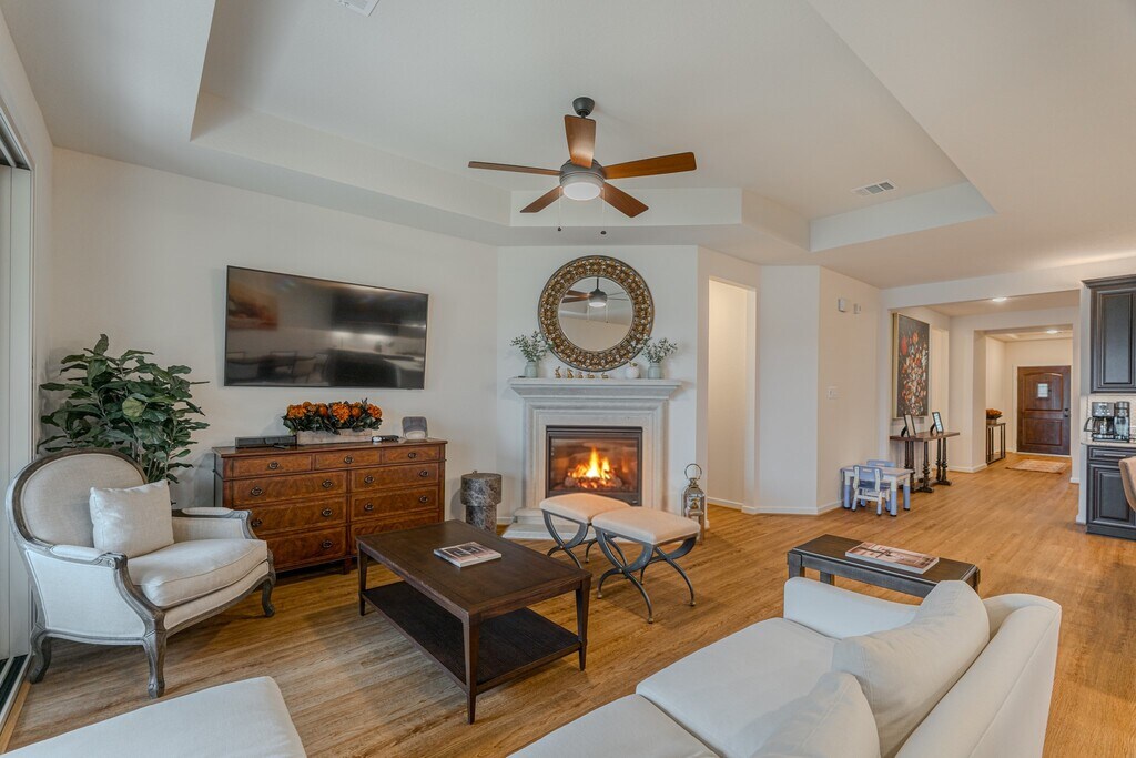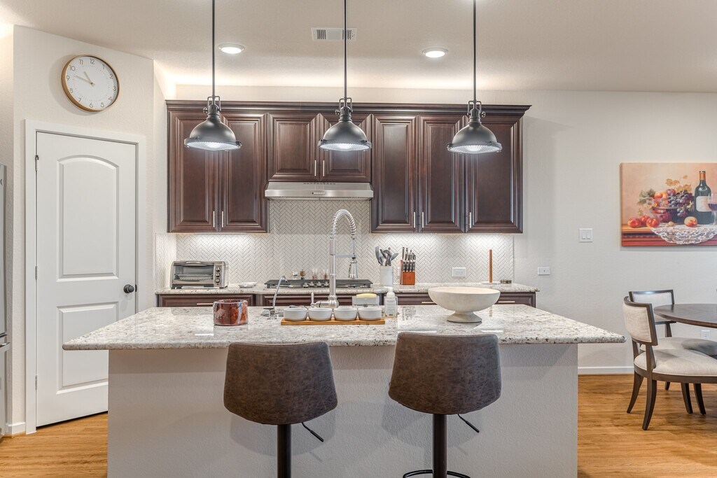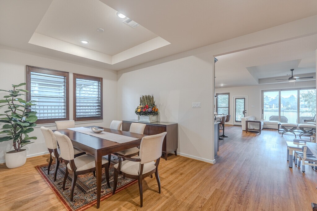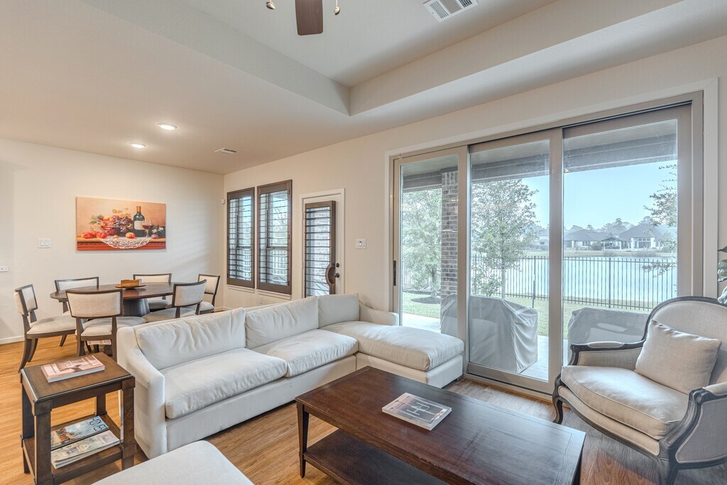 Welcome to this beautifully single-story brick residence offering 3 bedrooms and 2.5 baths,thoughtfully designed with elegance and effortless flow. Beautiful wood flooring,natural light,and an open-concept layout that seamlessly blends the living and dining spaces — creating an ideal setting for both refined entertaining and everyday comfort. The kitchen showcases sophisticated cabinetry,stainless steel appliances,and an island that overlooks the main living area. The primary suite serves as a private retreat,featuring a spa-like bath and generous closet space designed for both luxury and functionality. The covered back porch opens directly to serene lake views,offering a breathtaking backdrop for morning coffee or evening relaxation. Nestled in a highly sought-after community with tranquil water views and scenic walking paths,this home delivers a refined lifestyle defined by comfort,elegance,and natural beauty. MLS# 80626500