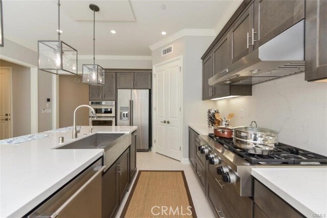 Located in the center of the most convenient of Eastwood, this gorgeous detached residence boasts a desirable private lot location. Fabulous floor plan features 4 bedrooms 3 1/2 full bathrooms, and a 2-car attached garage. The open layout makes a striking impression and the light-filled rooms. Expanded chef’s kitchen features extensive counter space and cabinetry, stainless appliances, and a large island with seating overlooking casual dining and a spacious great room. Splendid tile flooring covers most of the main floor and all wet areas and hardwood on the second floor. Relax and recharge in your luxurious master suite with a spa-like bathtub and separate shower. Generous-sized secondary bedrooms and convenient downstairs laundry offer comfortable living space for the entire family. Enjoy resort-style recreation and amenity-filled 2 established parks. Lap & wading pool, spa, half basketball court, tot lot, barbecues, and more. Shopping/dining are conveniently located near Woodbury Town Center, Irvine Spectrum, and Tustin Marketplace. Attending award-winning Irvine schools. Walking /Biking distance to top-ranked Eastwood Elementary School and Northwood High School. No Furniture is included MLS# OC26087741