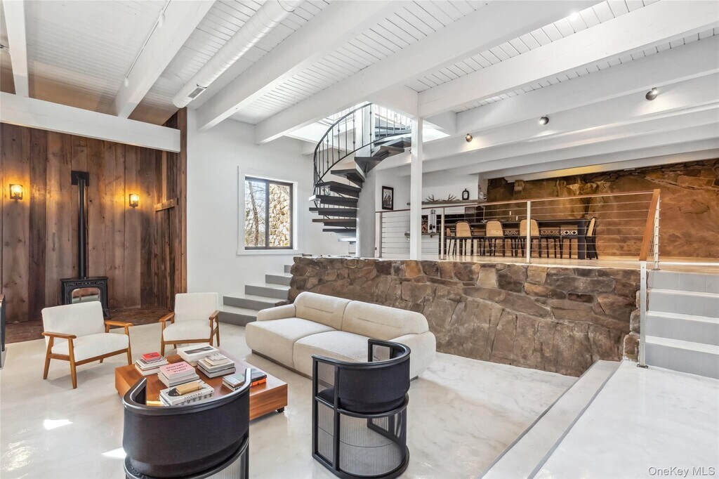 MIDCENTURY MODERN : A SEAMLESS CONNECTION WITH NATURE Nestled atop a striking boulder with panoramic views of Sterling Forest State Park,this spectacular home is a true masterpiece. Built in 1967,this home is a quintessential example of midcentury modern design,showcasing clean lines,a seamless integration with nature,and the thoughtful use of natural materials. The architectural philosophy of "bringing the outside in" is beautifully realized here,with expansive windows that frame breathtaking views and blur the boundaries between indoor and outdoor spaces. The use of stone,wood,and glass not only enhances the home’s connection to its natural surroundings but also creates a harmonious flow that celebrates both design and the environment.The spacious layout of this home offers a perfect blend of functionality and style. The open,two-level formal living and dining area provides an ideal setting for entertaining,with expansive windows that invite the outdoors in. The fully renovated kitchen is a chef’s dream,designed with both elegance and practicality in mind. With four bedrooms,the home includes a stunning primary suite featuring a cozy fireplace and a luxurious en-suite bath,creating a peaceful retreat. A private extended-living suite offers a secluded space for relaxation,while a second living room provides additional flexibility for comfort or entertaining. The home also boasts four beautifully updated bathrooms,each thoughtfully designed. A highlight of the home is the expansive three-season screened-in porch,which seamlessly extends the living space,offering a perfect place to enjoy the outdoors year-round. The property is a true outdoor haven,a flat lawn,fire pit area,rooftop terrace,and an adaptable indoor-outdoor screened deck. Positioned in a peaceful cul-de-sac at the end of a quiet street,the home backs directly onto the lush grounds of Sterling Forest State Park,offering unparalleled privacy and direct access to hiking trails and outdoor recreation. This property offers a rare combination of convenience and ample parking,with a two-car garage and an additional parking area that accommodates 6+ vehicles. Located just 7 minutes Tuxedo Train Station,this home offers quick access to key destinations. This home is perfect for those seeking privacy,modern amenities,and a connection to nature,all while being close to both outdoor recreation and everyday conveniences. Based on information submitted to the MLS GRID as of [see last changed date above]. All data is obtained from various sources and may not have been verified by broker or MLS GRID. Supplied Open House Information is subject to change without notice. All information should be independently reviewed and verified for accuracy. Properties may or may not be listed by the office/agent presenting the information. Some IDX listings have been excluded from this website. Prices displayed on all Sold listings are the Last Known Listing Price and may not be the actual selling price.