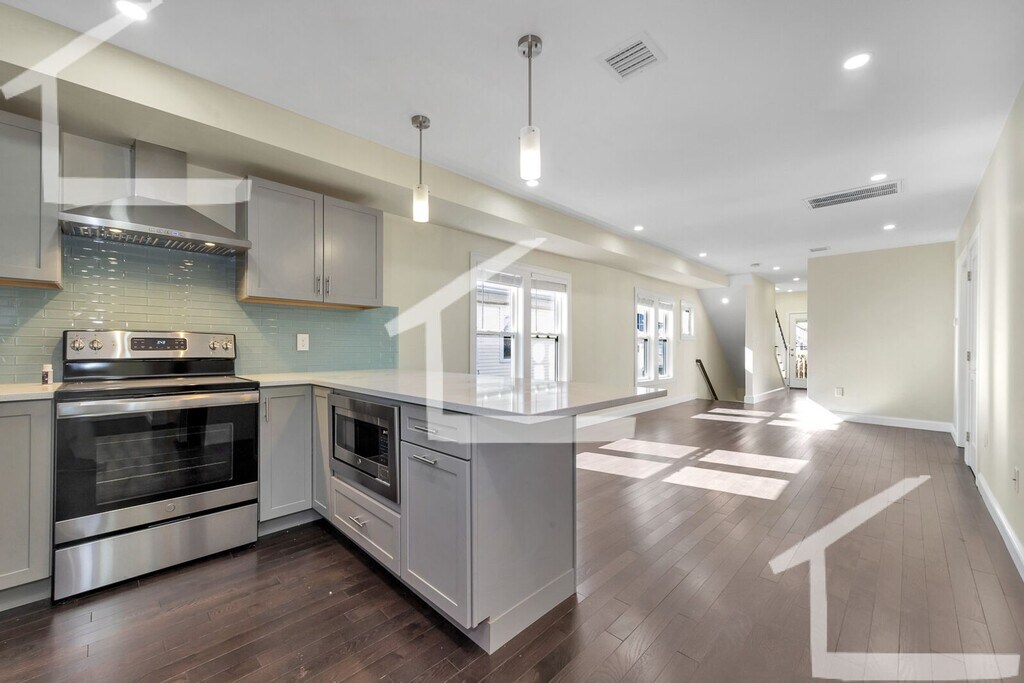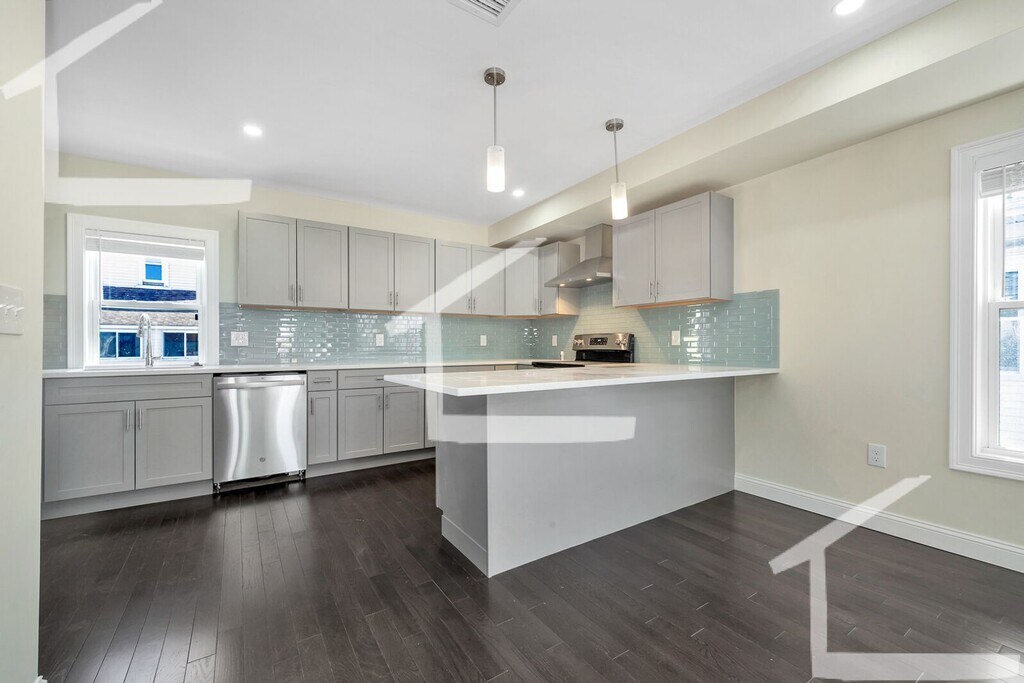 Bright, Spacious, Student Friendly, 2135SF, 2nd Floor, 5BR/5.5BA in Medford! Perfect for Tufts Students or Young Professionals! This sun-filled offering features central AC, high ceilings, multiple floors of living, an open floor plan, hardwood floors throughout, a spacious living room, five large, equal bedrooms each with its on en suite bath, a modern, fully applianced kitchen with granite counters, stainless appliance package, dishwasher, disposal and microwave, six modern baths, four decks, laundry in unit and off-street parking included!