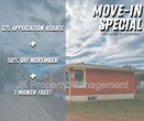 - MOVE IN SPECIAL | 50% OFF NOVEMBER RENT | 100% OFF DECEMBER RENT | $75 REBATE Sign a lease in November instantly receive a $75 rebate and pay: -Security Deposit -50% off pro-rated November rent plus utility fee and insurance -No rent in December! You only pay the utility fee and insurance -Get entered into our Black Friday drawing for BIG prizes like a new Amazon Fire TV, tools, appliances, gift certificates, and more!