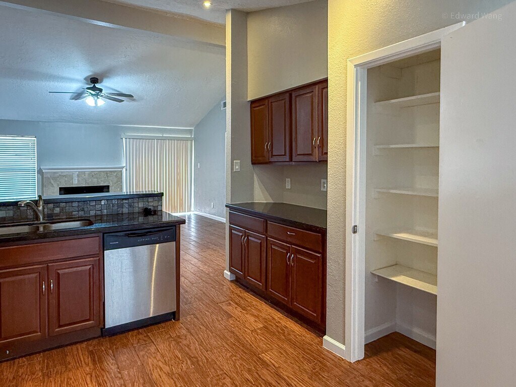 Step into effortless comfort with this thoughtfully updated home offering an efficient open layout and abundant natural light throughout. The living areas feature stylish,wood-look tile flooring,while the bedrooms are cozy yet refined with laminate wood floors—carpet-free and easy to maintain. Sunlight streams through sliding glass doors in both the living room and primary bedroom,creating a warm,airy atmosphere—and granting easy access to the backyard retreat. The kitchen shines with stainless-steel appliances and ready-for-use essentials provided as a courtesy (washer,dryer,refrigerator),which are not included in the lease. Located within the award-winning Katy ISD school zone and surrounded by a variety of shops and restaurants,this home offers the perfect blend of convenience and charm. With quick access to the Energy Corridor and leading medical centers,everyday life here is both comfortable and connected. MLS# 37410049