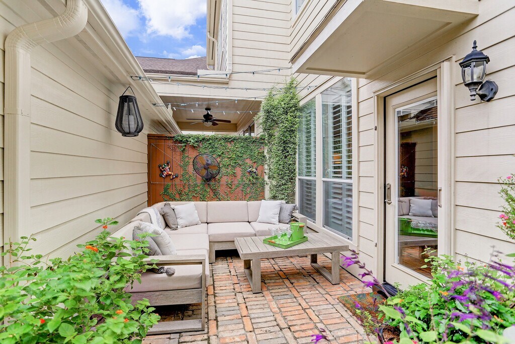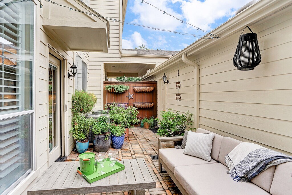 Unique 3 bedroom 3.5 bath home up on a hill in highly desired Memorial Heights facing Spotts Park. City views from front yard & 2nd floor balcony overlooking the park. Downtown views from the neighborhood. 24 hour manned & gated access as well as secure pedestrian gate to the park connecting to miles of hike & bike trails. Conveniently located next to HEB and near Whole Foods & many great restaurants.This home is gorgeous from top to bottom & immaculately maintained. 1st floor living. No carpet. Fresh paint. Guest parking in front of home. Kitchen recently renovated w/ white cabinets & quartz counters; stainless steel appliances; hardwood floors; large shower & jetted tub in primary bath; plantation shutters. All bedrms have en suite baths & large walk in closets. Detached 2 car garage w extra storage space. Private patio between home & garage. Huge 3rd bedroom with full ensuite bath for guest rm,game rm,study,and/or workout rm. Washer,Dryer,Fridge,Front yard maintenance included MLS# 93512658