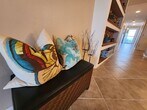 The Atlantic Ocean is just 2 blocks away!! Penthouse level 6th floor 3-bedroom, 2 bath unit in Building 10 - with spectacular estuary views with a homey vibe. Updates include; entire unit tiled, granite Kitchen and Baths, updated light fixtures, showers and baths, Plantation Shutters, Screened Patio, complete Hurricane protection to name a few. Bedrooms are furnished with King, Queen and (double) Twin beds, along with a Sleeper Sofa for any extra guests! Garage parking is OPEN with one space per unit. Storage unit in the garage comes complete with Beach equipment and a deeded walkover is just steps away to the pristine no drive beach. The unit comes fully furnished or furnishings may be removed on request. Pet friendly, up to 35 lbs. Enjoy the two heated pools, exercise rooms, tennis court, movie room, and walking trail offered exclusively by the Ocean Walk community. The security gate and daily security personnel insure the safety of all guests. Available April 10, 2026.