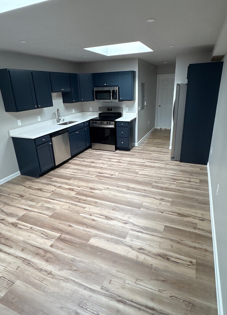 New construction two bedroom two bath apartment with high end finishes and excellent location.All utilities included except electric. Water, garbage, sewer, Lawncare, driveway snow removal all included.