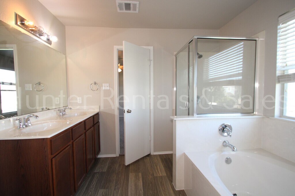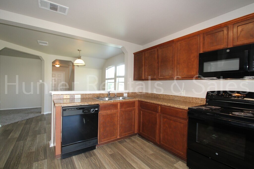 Welcome to this spacious and beautifully maintained four-bedroom, three-bathroom home offering over 2,000 square feet of comfortable living space. Nestled in the desirable Meadows of Trimmier neighborhood, this two-story gem features a well-kept yard, privacy-fenced backyard, and a covered patio perfect for relaxing or entertaining. Enjoy the convenience of a two-car garage with automatic opener. Inside, you’ll love the thoughtful floor plan that includes a downstairs bedroom with full bath, ideal for guests or multi-generational living. The main level also features a formal dining room, a cozy living area, and a well-appointed kitchen with a breakfast bar, glass-top range, built-in microwave, side-by-side refrigerator, and pantry. Upstairs, you’ll find a spacious rec room/living area, three additional bedrooms, and a large laundry room with shelving. The primary suite offers a luxurious retreat with a garden tub, separate shower, double vanity, and a huge walk-in closet. Additional highlights include: Faux wood blinds throughout, Walk-in closets in multiple rooms, three full bathrooms for added convenience. This home blends comfort, functionality, and style in one fantastic package. Don’t miss your chance to call it your own! PRICE AND AVAILABILITY ARE SUBJECT TO CHANGE WITHOUT NOTICE. Application Information: * Offered by Hunter Rentals & Sales Visit our website, for an online application and to view complete listing information. Questions, call . * We do full background checks & are seeking qualified, long-term residents. To view our rental criteria, visit our website: * Application Fee: $65.00 each. * Security Deposit is due at lease signing. * Once approved, a one-time non-refundable administration fee of $125 will apply. The administration fee is due by the lease start date.