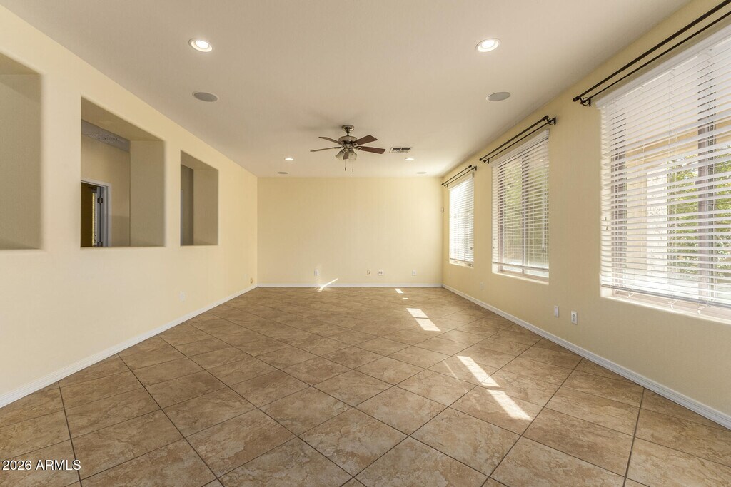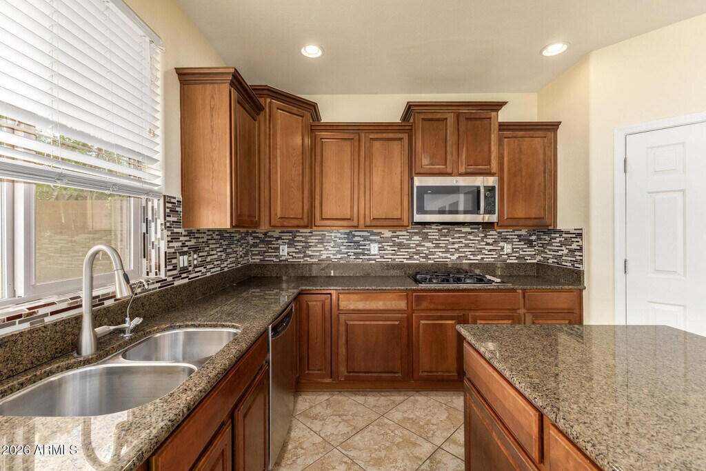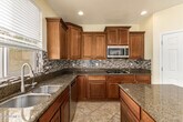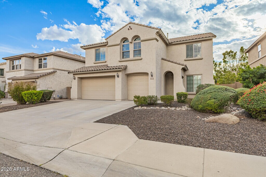 Take advantage of this fantastic rental opportunity! This gorgeous 4-bedroom home welcomes you with a 3-car garage and a thoughtfully designed front landscape. Discover an inviting living room with high ceilings,a warm palette,blinds,and durable tile flooring. Fall in love with the spacious great room,perfect for intimate evenings with loved ones. The stunning kitchen comes with granite counters,abundant wood cabinetry with crown moulding,recessed lighting,a mosaic tile backsplash,stainless steel appliances,a practical pantry,and a center island for extra prep space. Double doors lead to a den,ideal for an office or a quiet study. Upstairs,you'll find a sizeable loft that provides a versatile living space. The cozy primary bedroom showcases plush carpeting,an ensuite with dual sinks,and a walk-in closet. Imagine enchanting evenings in the lovely backyard,showcasing a covered patio,stylish pavers,and pristine artificial turf. Don't miss this incredible gem!